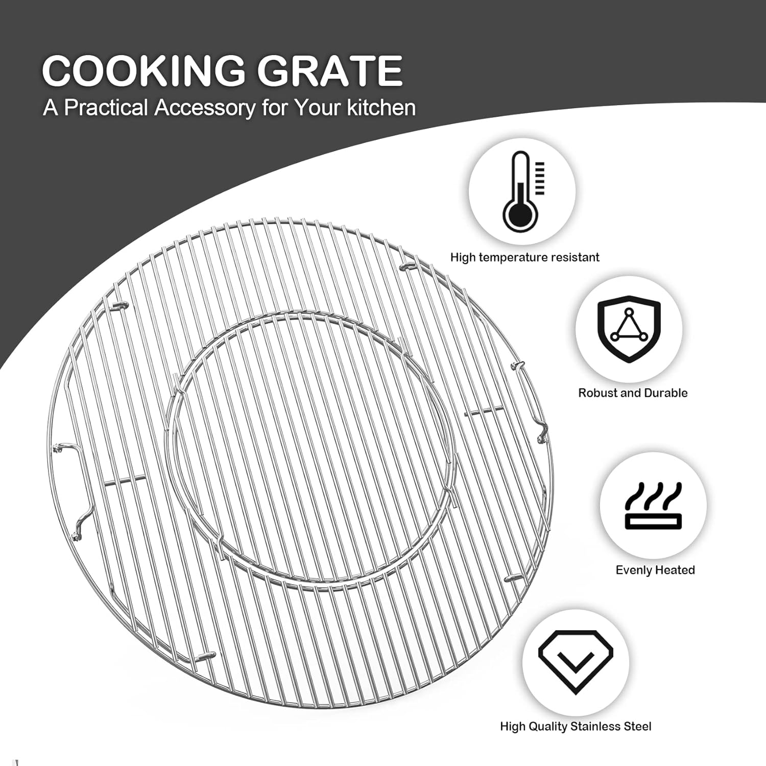 ✔The cooking grate perfectly fits for Weber 22.5-Inch Charcoal Grill and other φ 57cm kettle grills,used with the Gourmet BBQ System Griddle, Wok, Sear Grate.Replacement for Weber model 8835.
