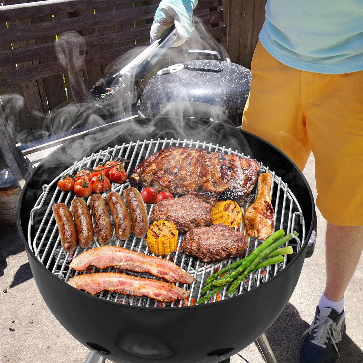 ✔Easy to add charcoal while grilling thanks to the removable inner sear grate and double-sided opening design.