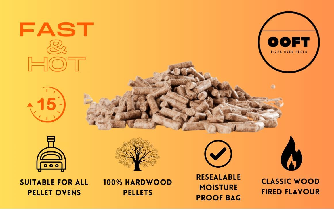 OOFT Oak Hardwood Pizza Oven Pellets – 4.5KG Resealable Bag – High Heat Output – Suitable for Ooni, Dellonda, Nero, Fresh Grills, Ninja Woodfire and many more.