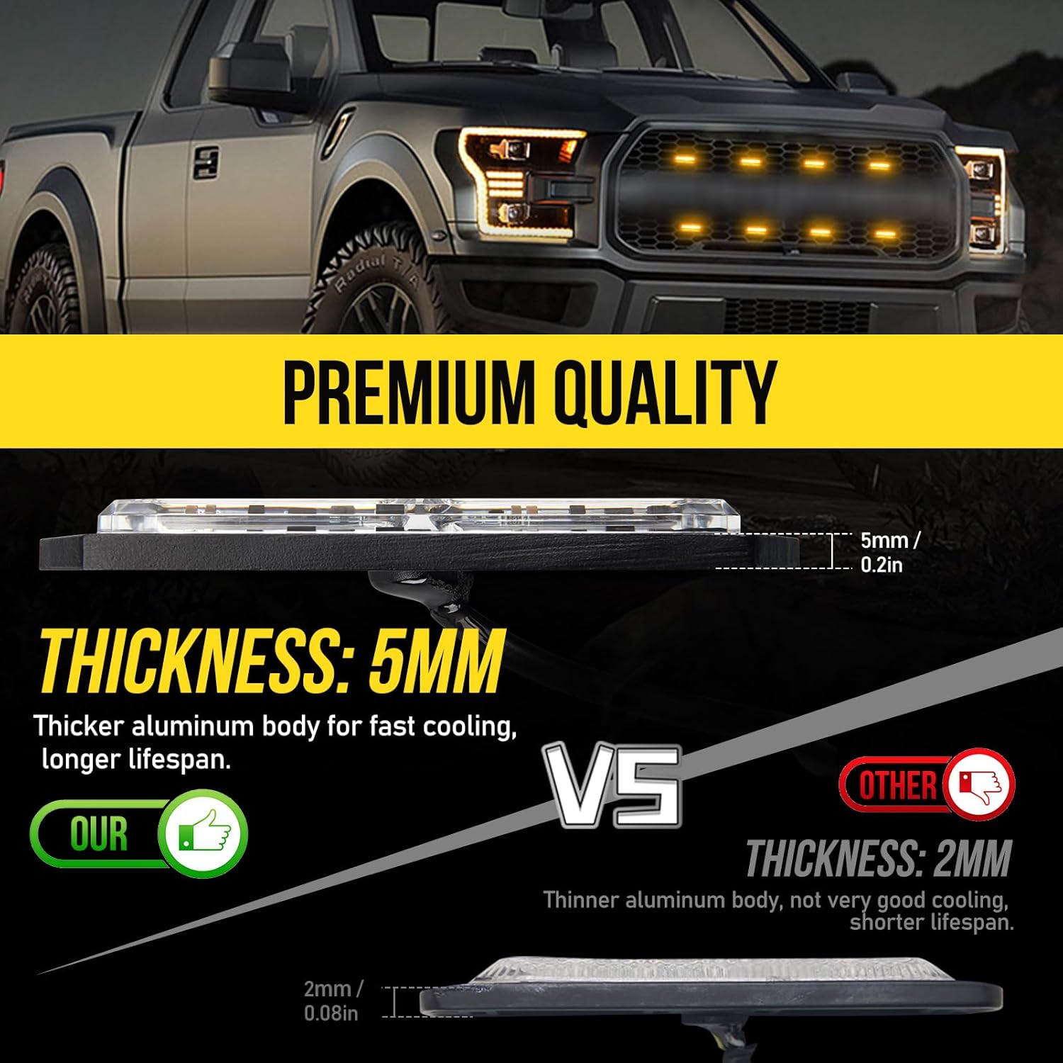 【Upgraded Waterproof Amber Led Strobe Lights for Trucks】 For this amber led grille strobe lights, it is waterproof apron and breathing hole design on the back, rather than other no apron emergency strobe lights, which make the lifespan for this amber strobe lights longer.