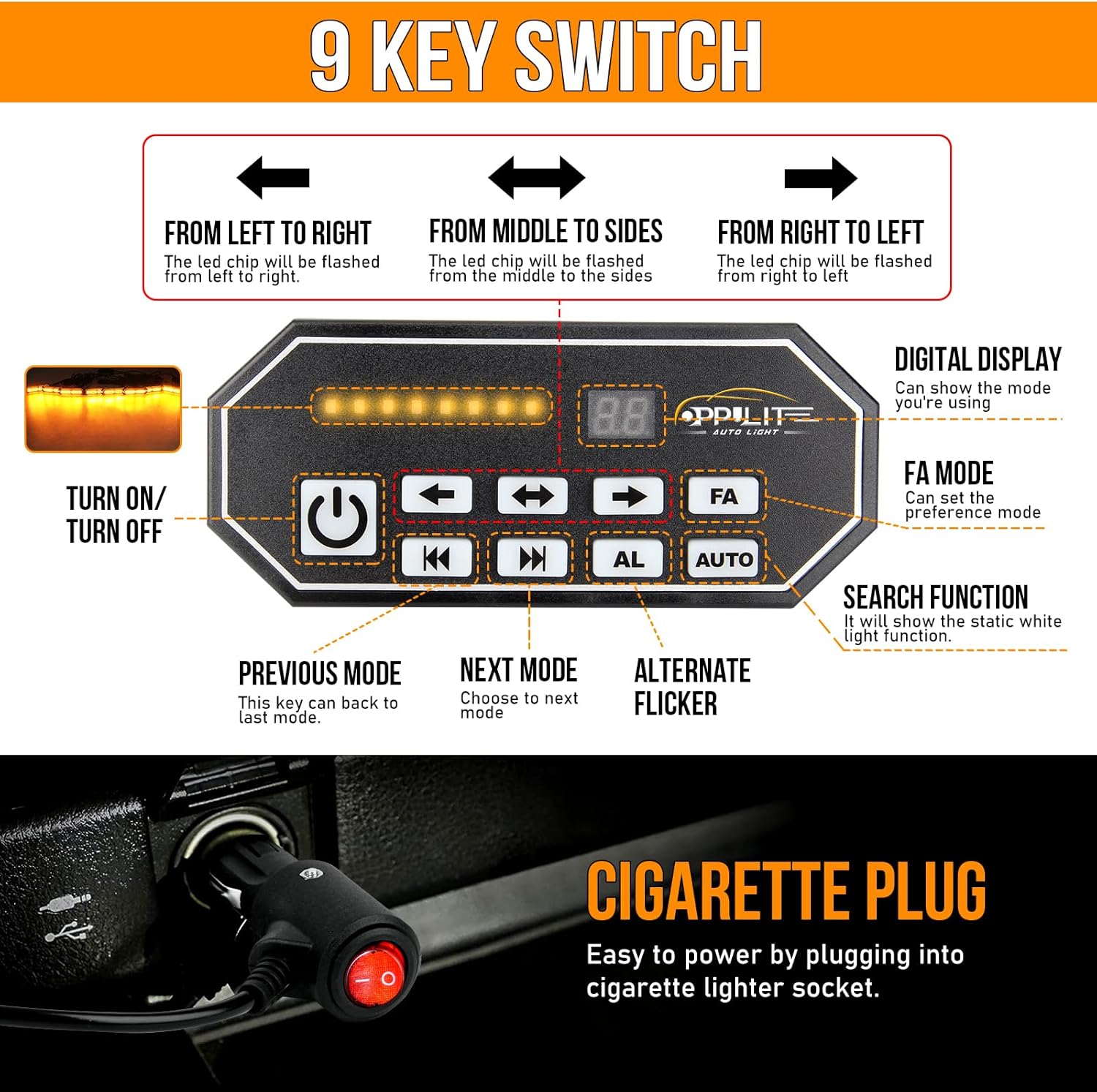 【Come with 9 Key Switch】 This amber strobe lights is come with 9 Key Switch, which easy to switch the mode. The Digital Display shows you which mode you are using and you can set the Preference Mode. There are 20 flashin g mode for choice.