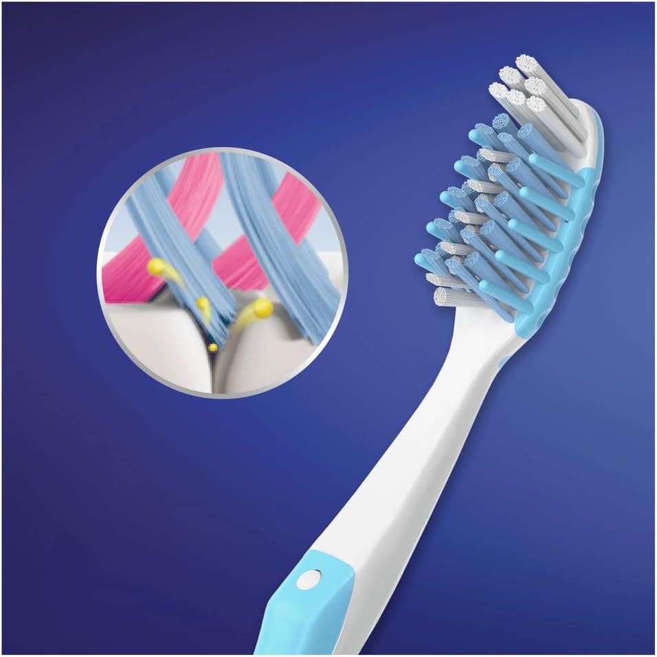 Oral-B Pro-Expert All-In-One manual toothbrush comes with CrissCross bristles that attack teeth plaque from a perfect 16 degree angle. The toothbrush cleans along the gumline with its carefully polished end-rounded bristles and gently massages your gums with soft gum stimulators. Plus, the textured tongue cleaner helps remove germs on your tongue to leave your breath feeling fresh.