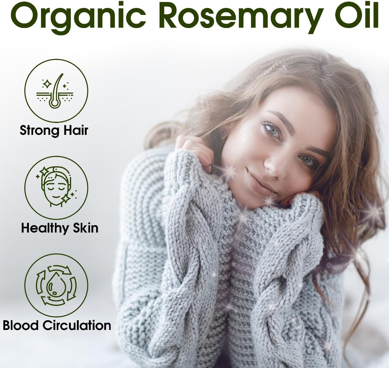 Organic Rosemary Oil for Hair Growth Pure Essential Oil for Dry Damage Hair Dandruff Scalp Treatment Hair Loss Eyelashes Eyebrows Hair Care