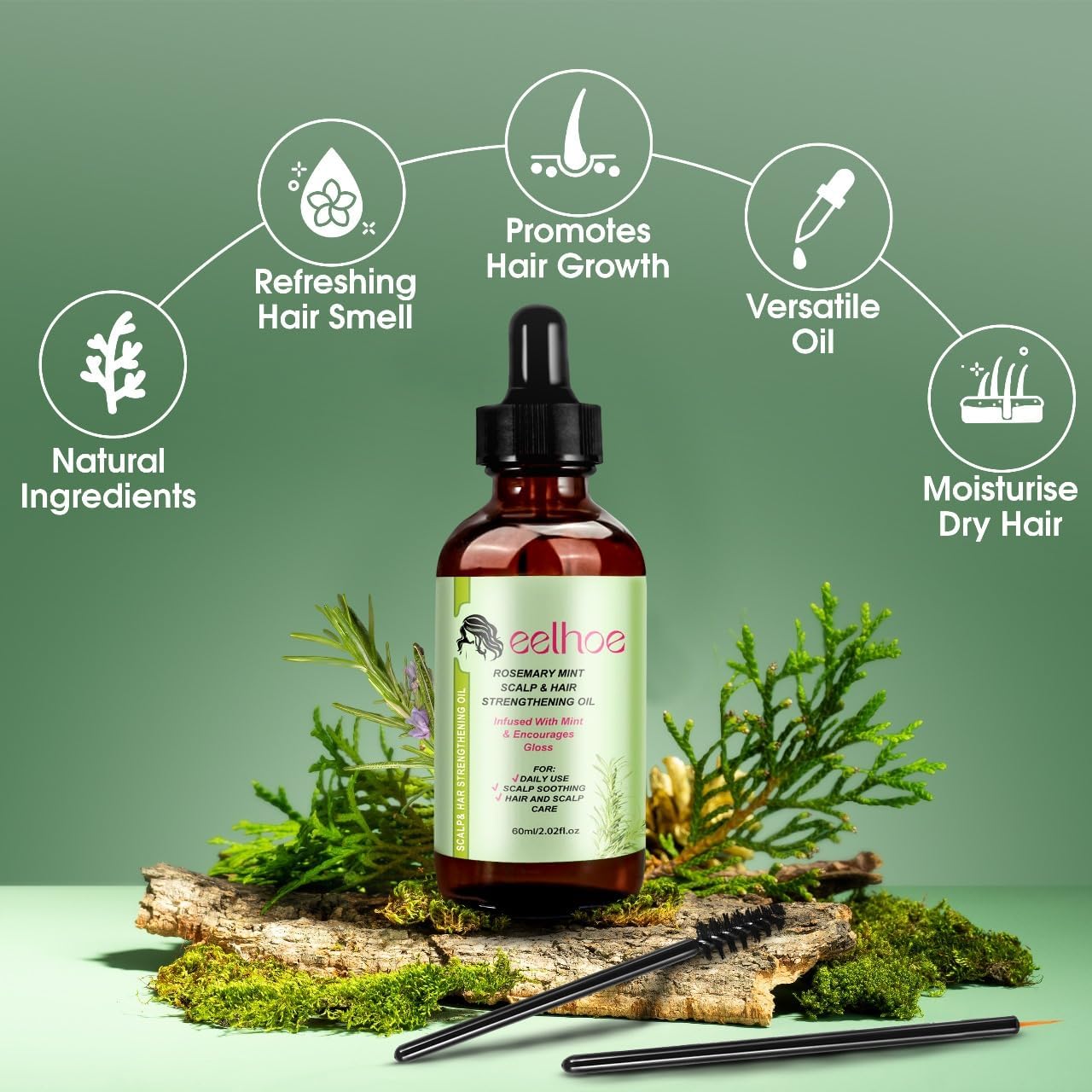 💇♀️STIMULATE HAIR GROWTH: This hair oil is the perfect solution for promoting hair growth and strengthening hair follicles with the nourishing properties of rosemary. The unique formula helps reduce hair fall and breakage, supporting overall hair health