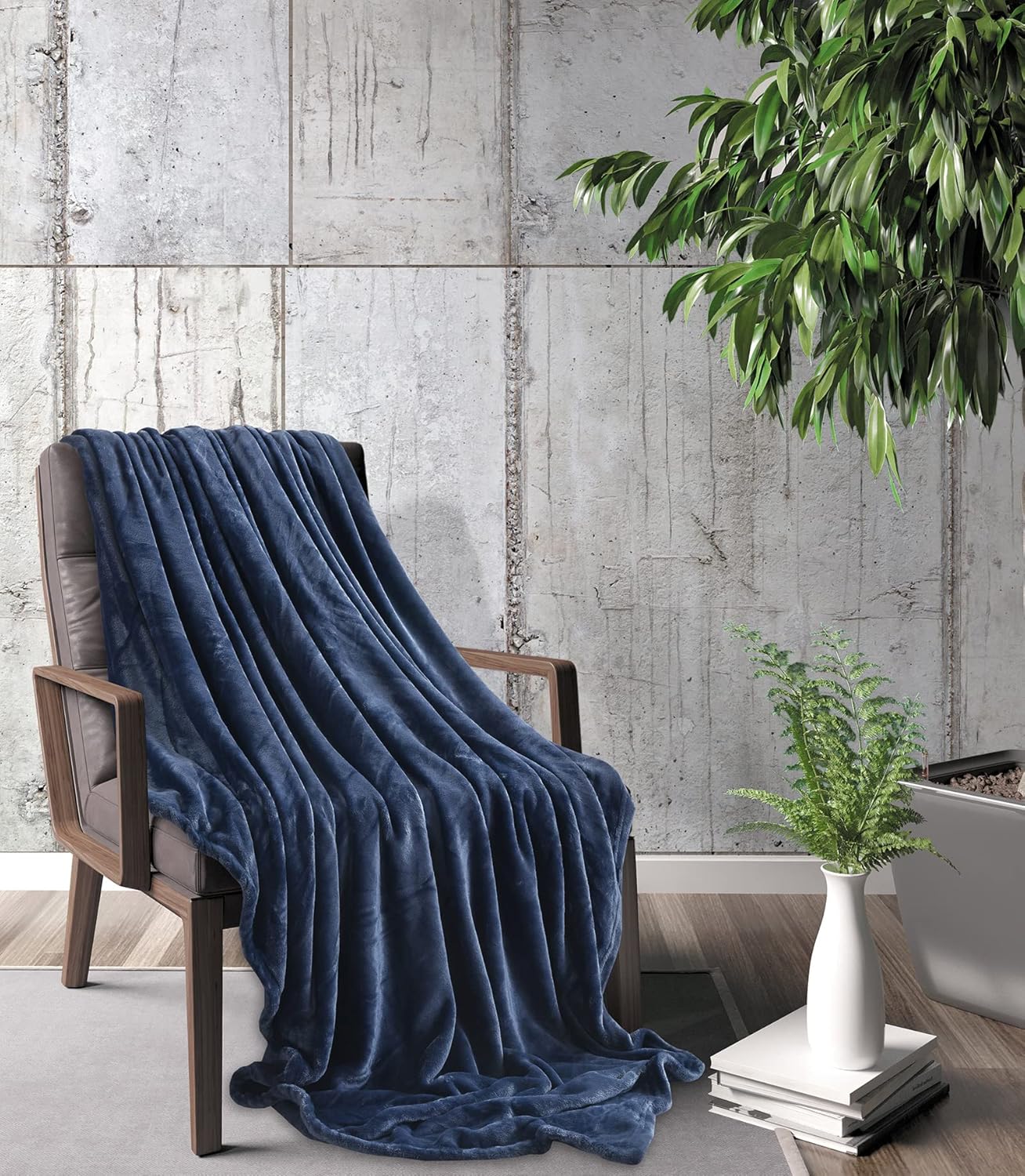 Orilautex Flannel Bed Blanket Queen – Soft, lightweight plush comfort of a luxurious microfibre blanket (NAVY, 120x150CM)