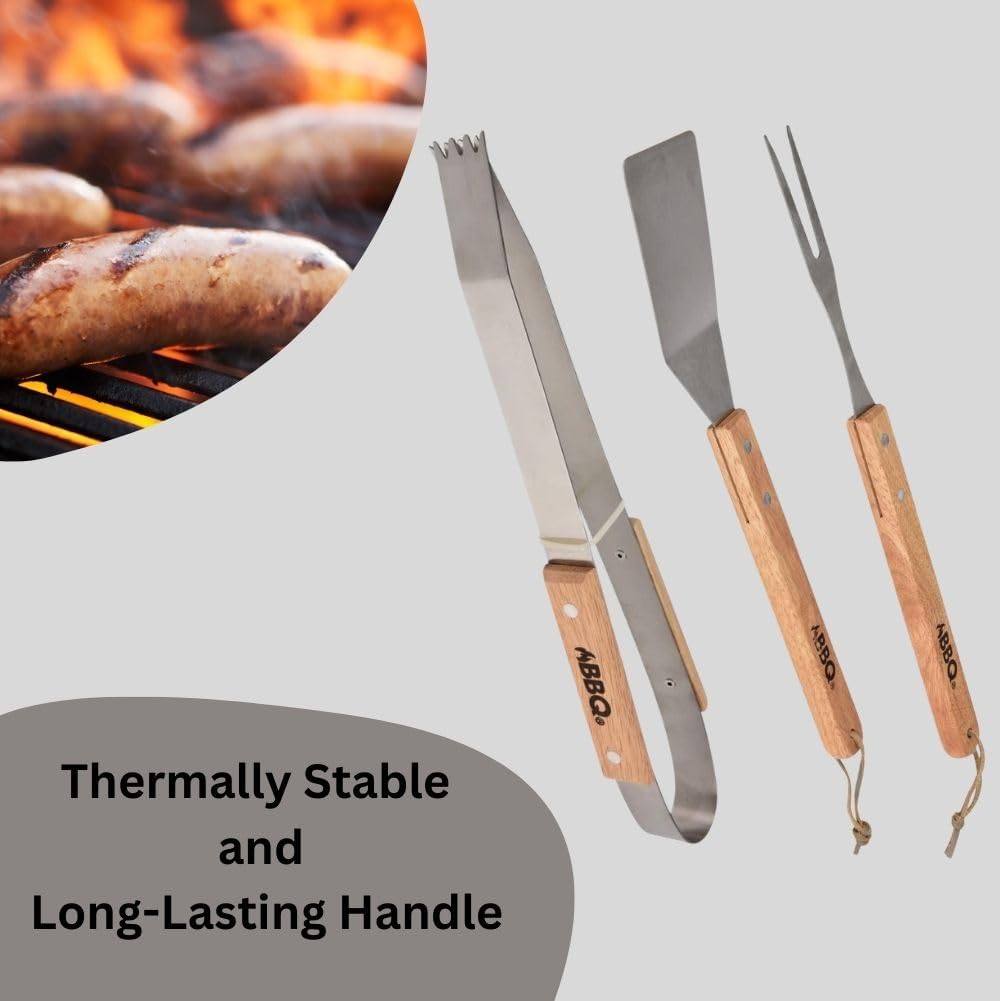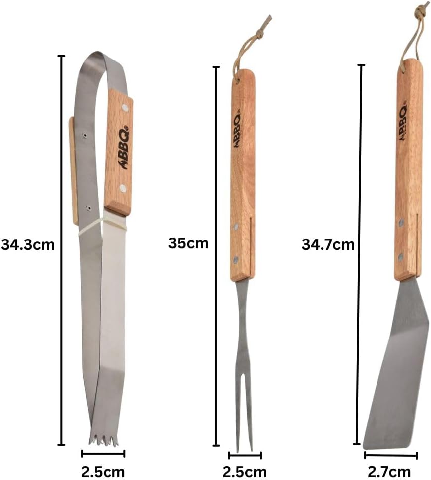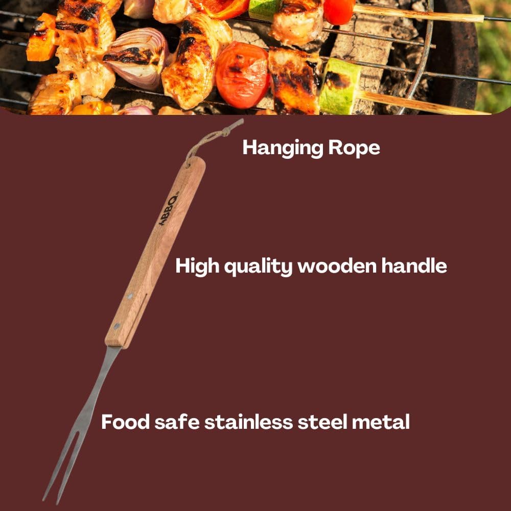 Curated from extra thick, food safe stainless steel metal part and high quality wooden handles – the kit gives the perfect BBQ experience, Heavy-duty and Durable for the ultimate grill and lightweight so can easily be carried along.