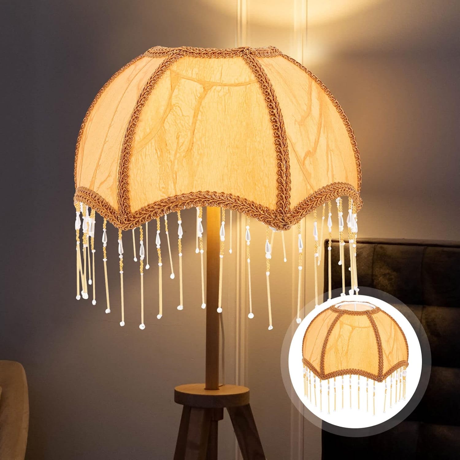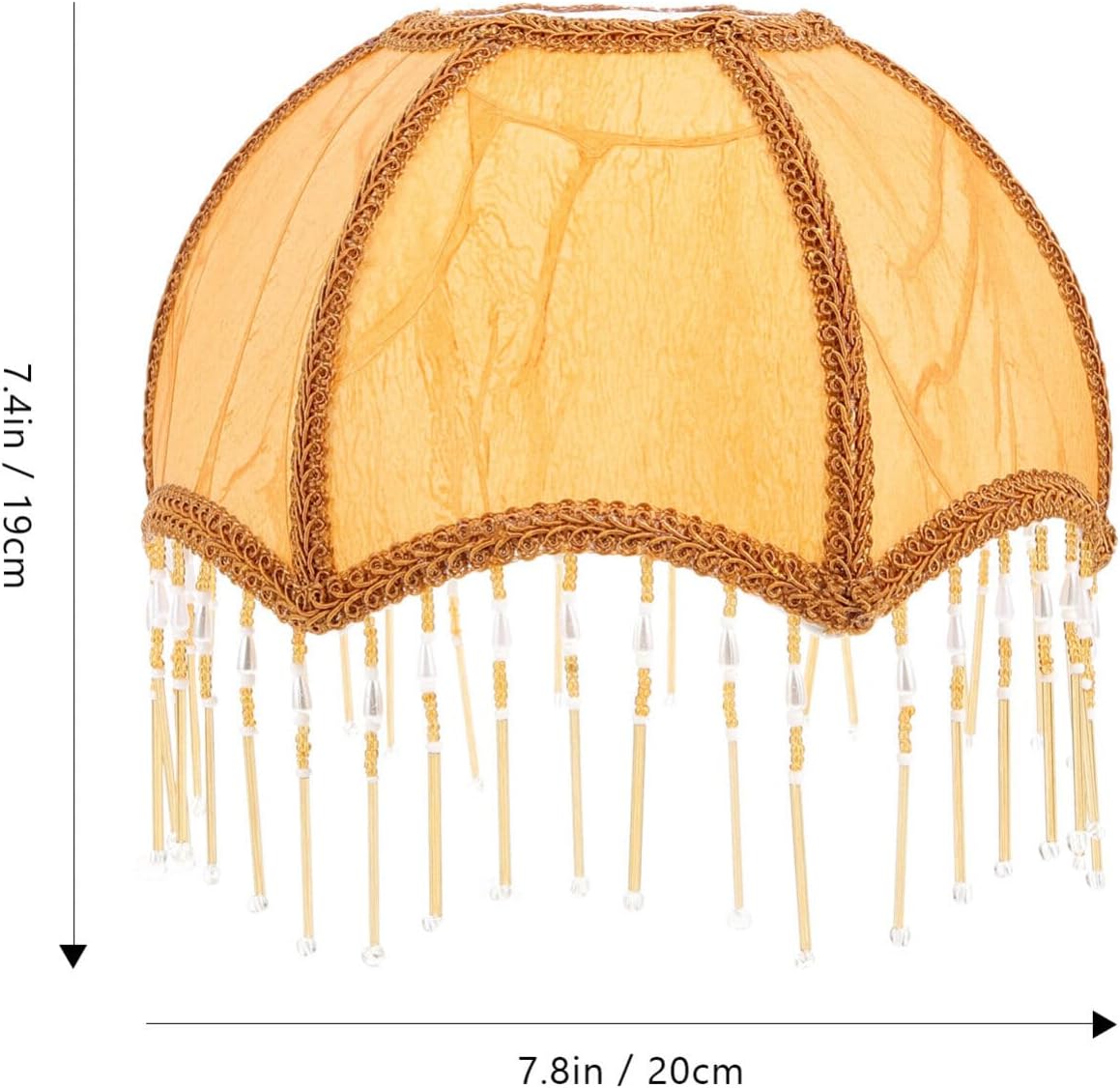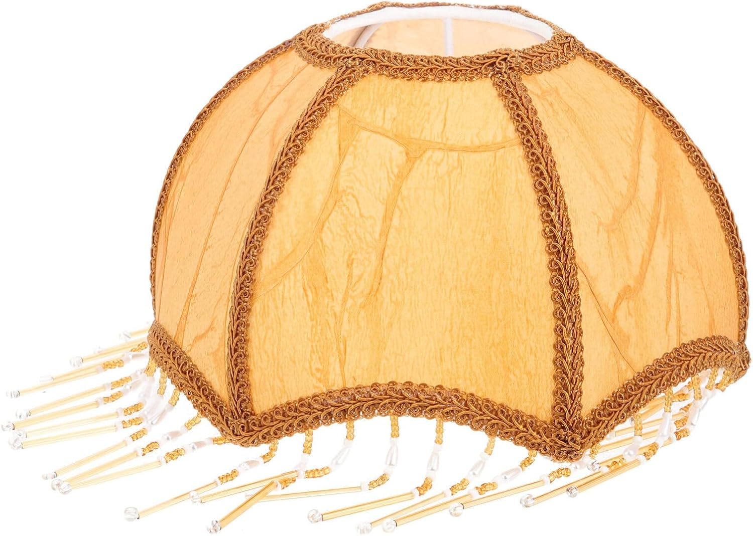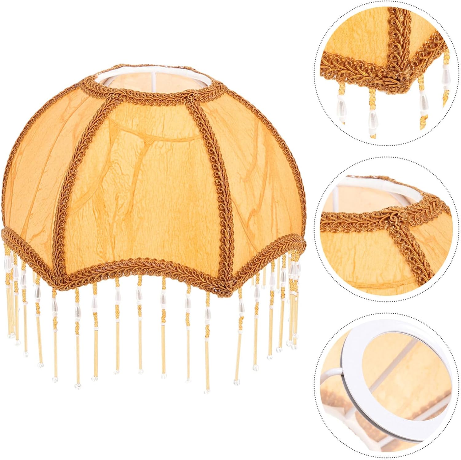 OSALADI Small Lamp Shades Vintage Lamp Shade, European Style Lampshade E27 Vintage Cloth Art Bead Lace Lampshade with Tassel Fabric Scallop Dome Lamp Shade Light Brown