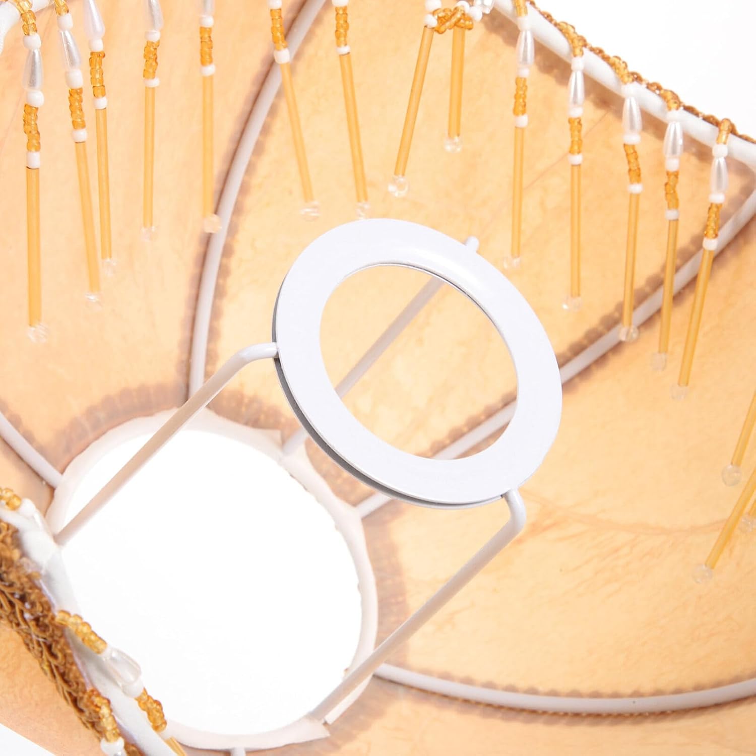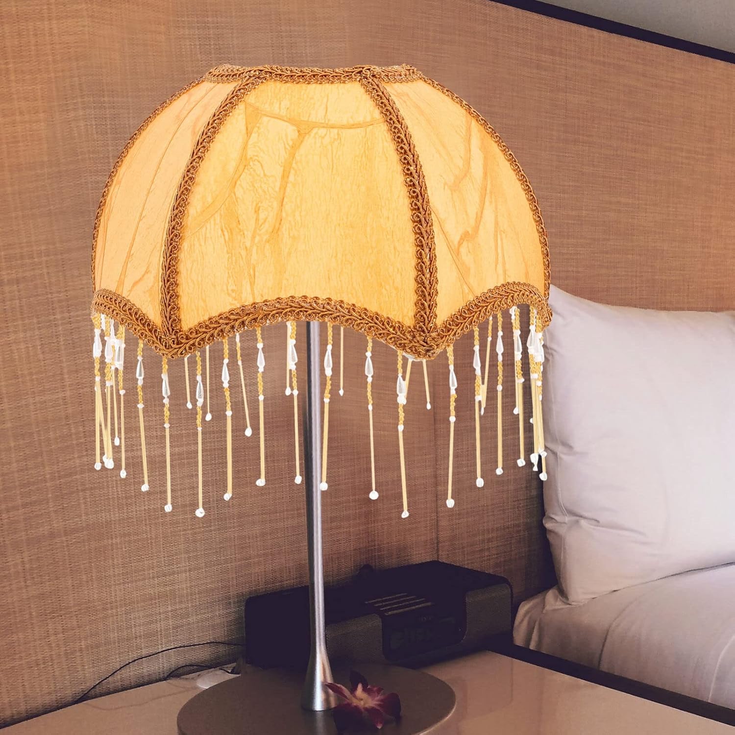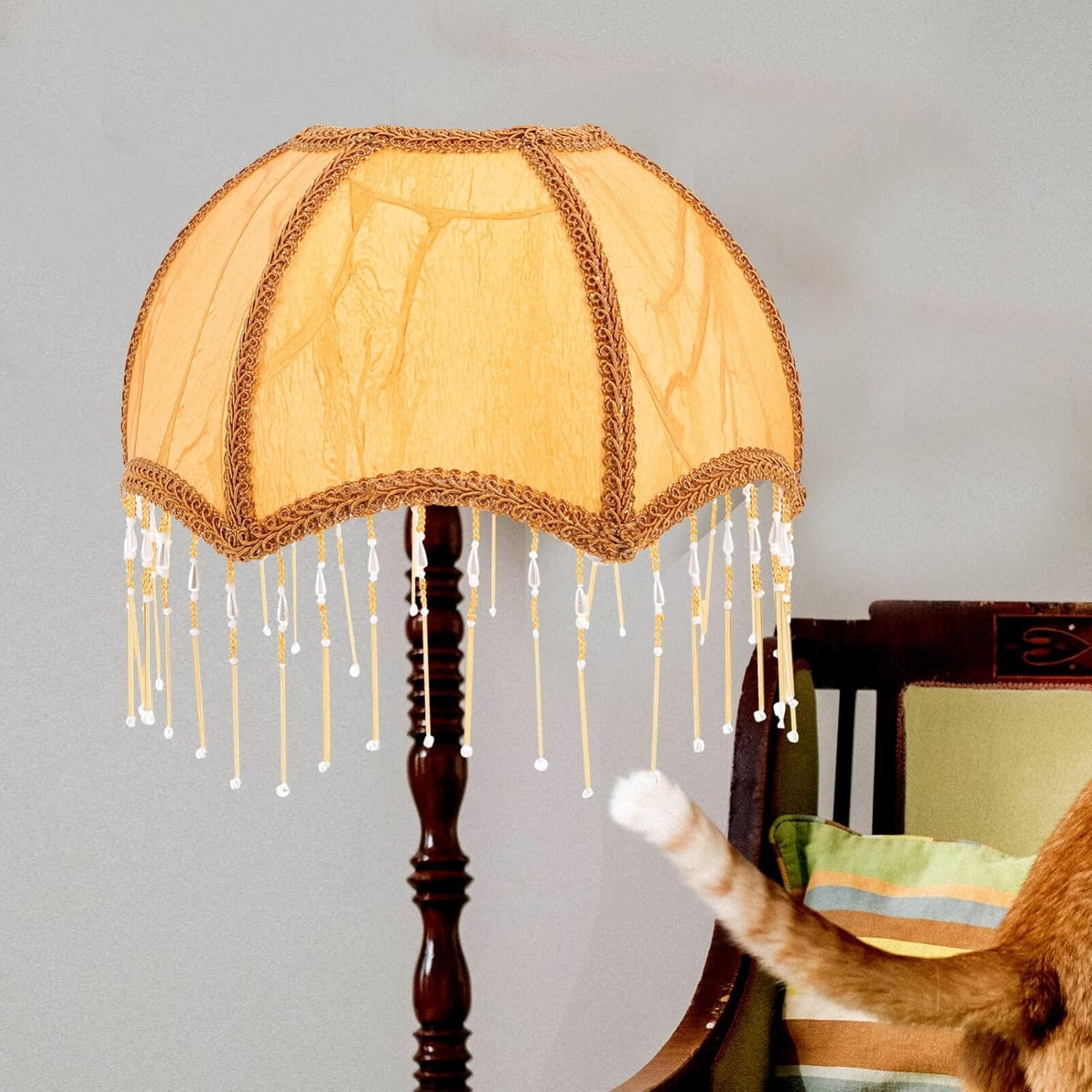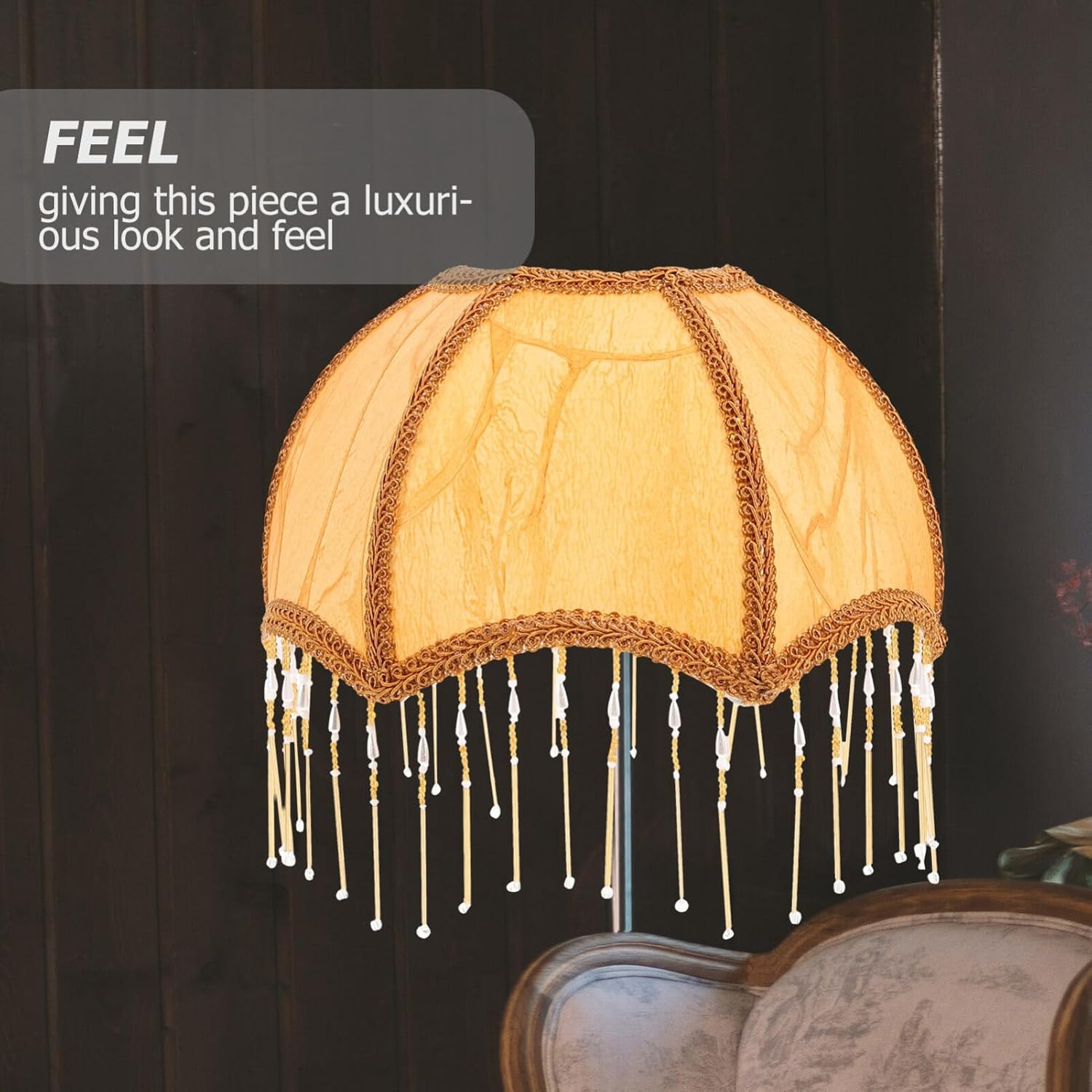 OSALADI Small Lamp Shades Vintage Lamp Shade, European Style Lampshade E27 Vintage Cloth Art Bead Lace Lampshade with Tassel Fabric Scallop Dome Lamp Shade Light Brown