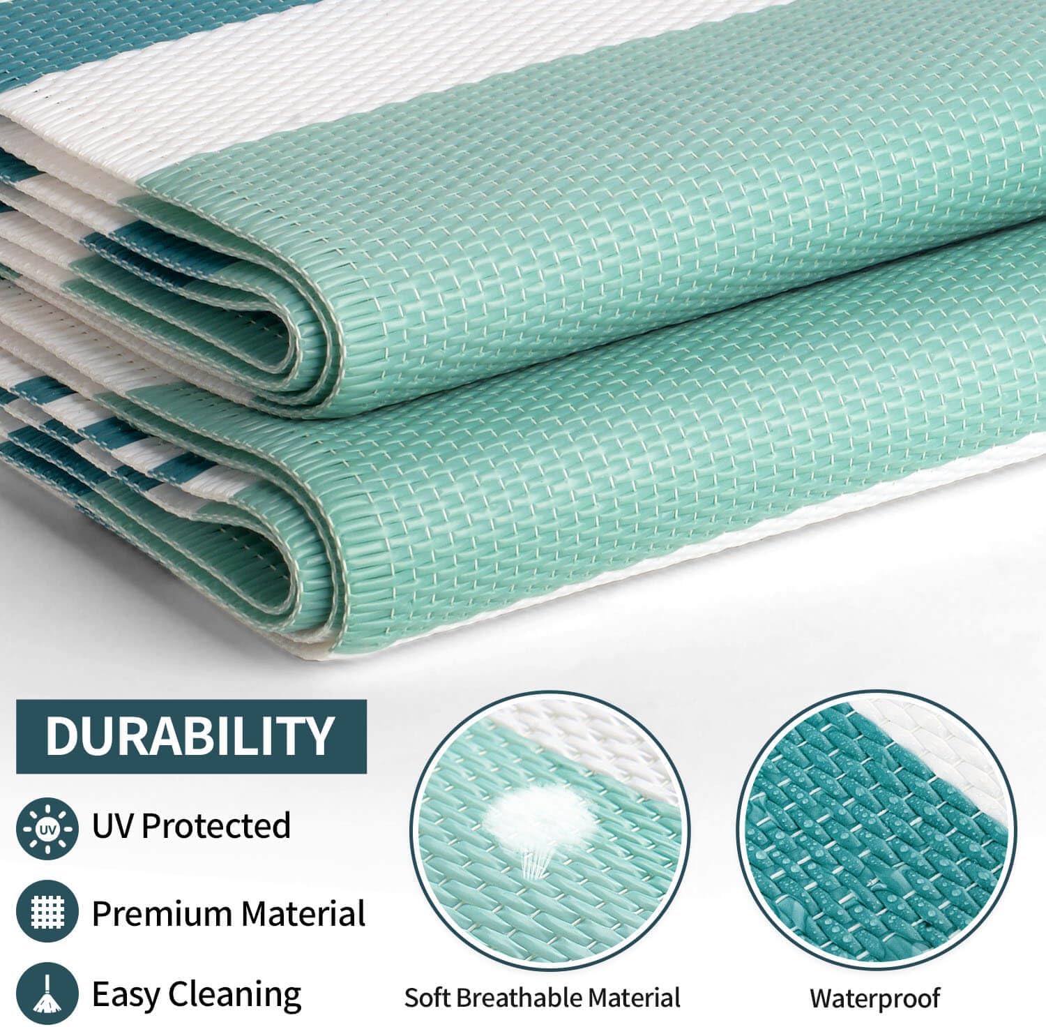 【Multi-Functional Use】Versatile and functional camping rug which stands up to all seasons is a great option to create an outdoor oasis for patio, porch, deck, playground, beach, RV camping, balcony, picnic, gardens and garages