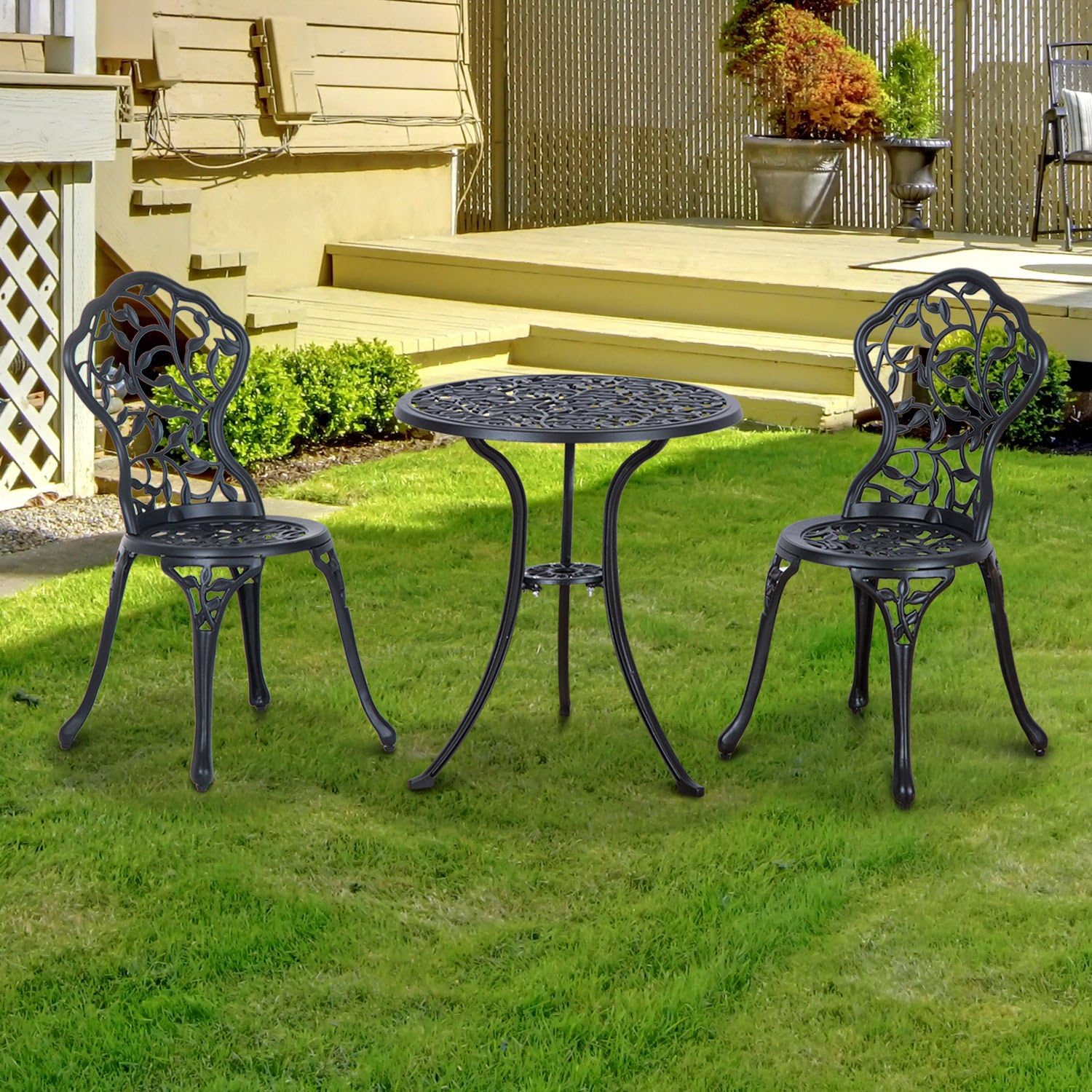 Outsunny 3 Pcs Cast Aluminum Bistro Set Garden Furniture Dining Table Chairs Antique Outdoor Seat Patio Seater