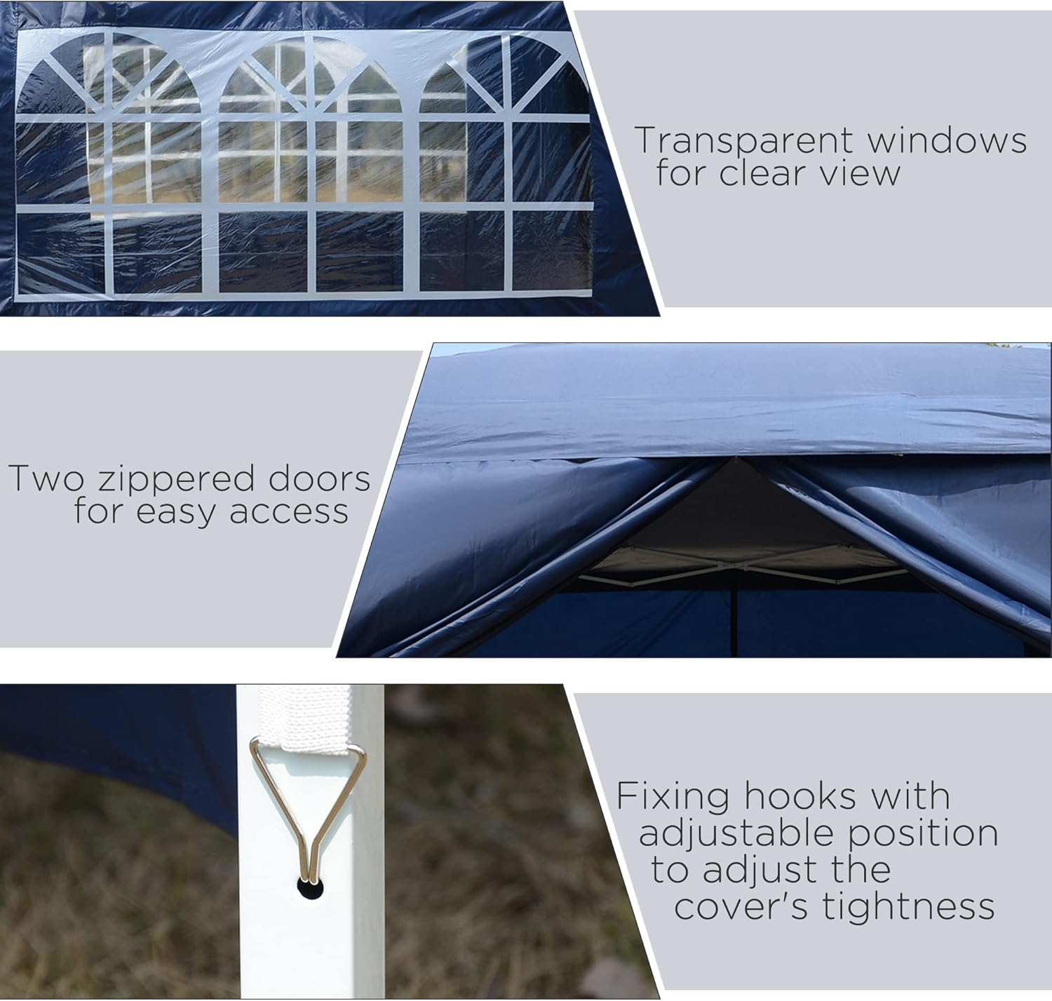 Outsunny 3 x 3 m Garden Pop Up Gazebo, Wedding Party Tent Marquee, Water Resistant Awning Canopy with Sidewalls, Windows, Carry Bag, Blue