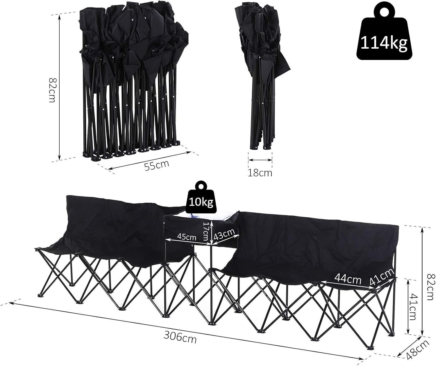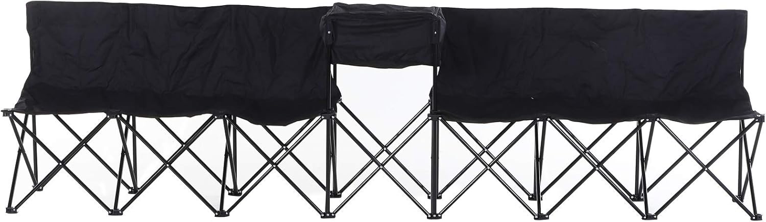 Outsunny 6 Seat Folding Sports Bench Portable Sports Team Bench Spectator Chair with Cooler Bag and Carrying Bag for Outdoor Picnic Camping – Black