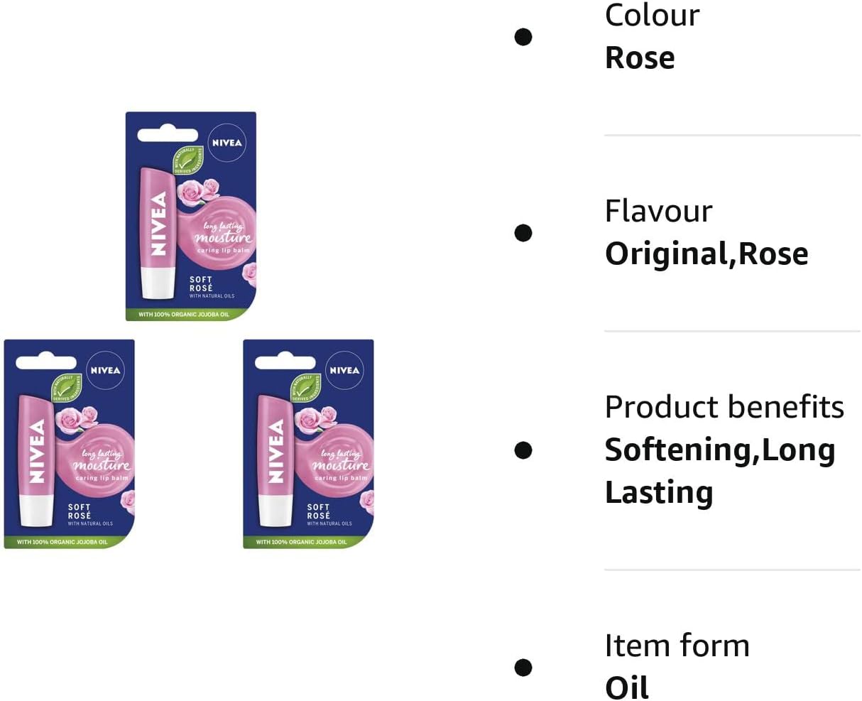 Pack Of 3, Nivea Lip Care Balms Soft Rose