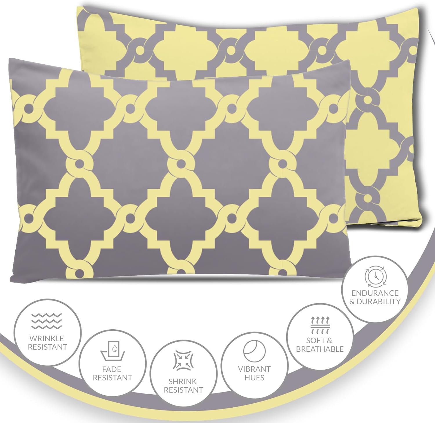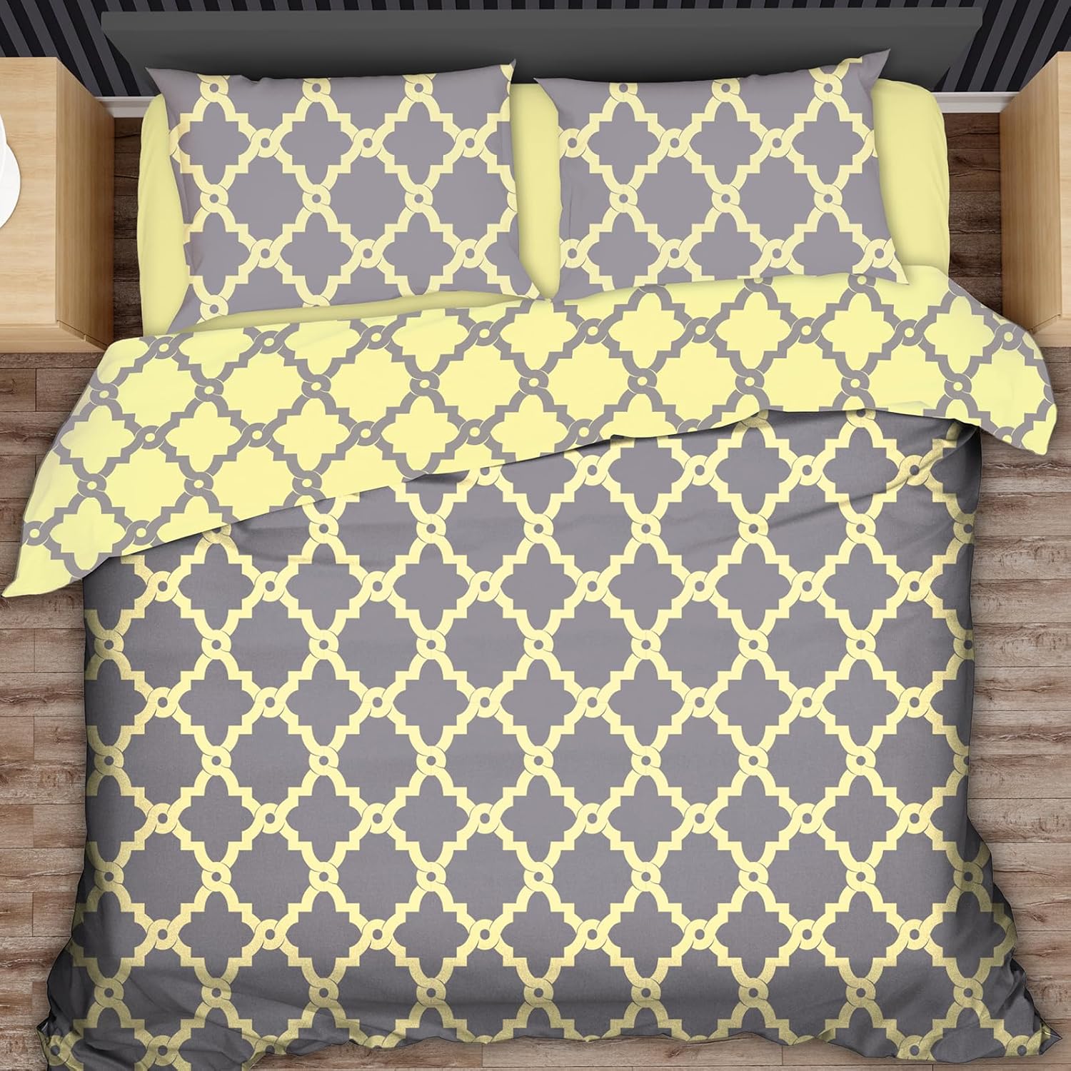 Pamposh Single Duvet Cover Set – Doublesided Single Bedding Sets (135 x 200 cm) – Premium Microfiber Duvet Cover Single – Quilt Cover Set – Hypoallergenic Bedding & Linen Sets Grey & Yellow