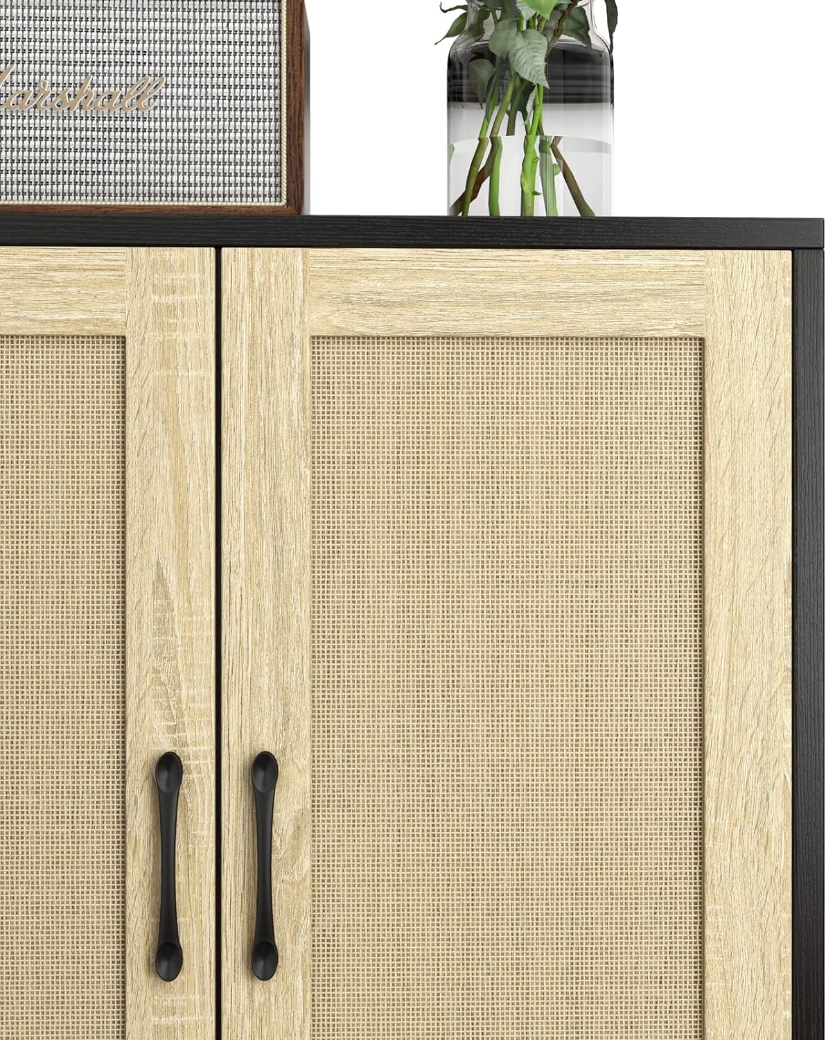 Panana Buffet Cabinet Sideboard with Rattan Decorated Doors Kitchen Storage Cupboard Accent Cabinet (Black)