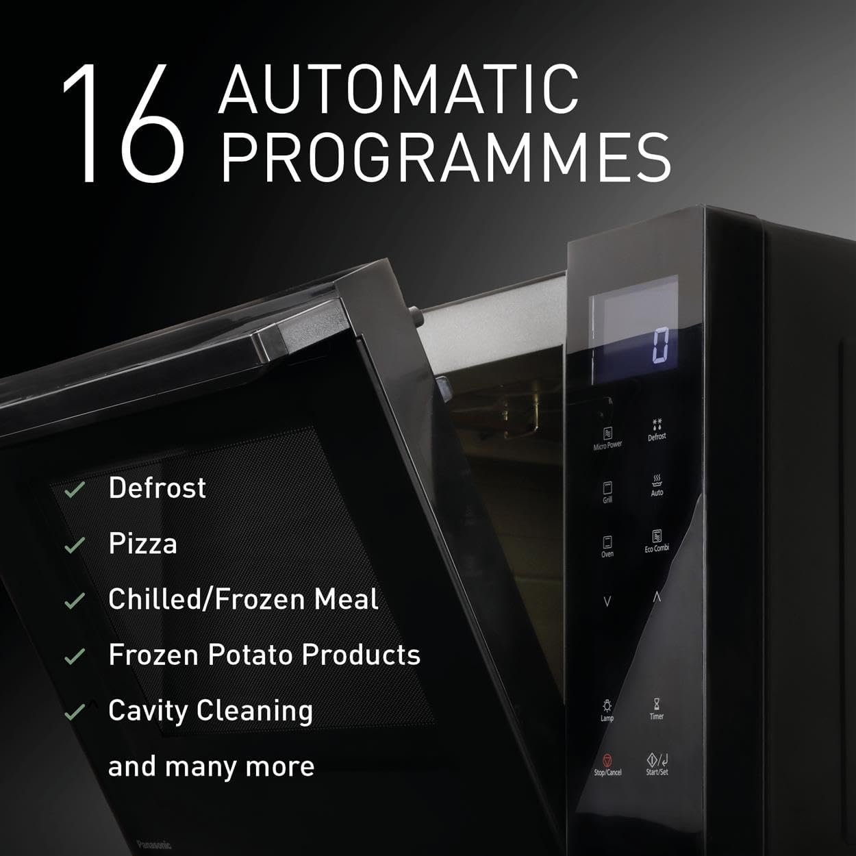 Panasonic NN-DF38PBBPQ Combination Microwave Oven & Grill, 1000W, 23L, Inverter Technology, Eco Combi Mode, Flatbed, 16 Auto Programmes & Defrost, Enamel Shelf Tray, Wire Rack, Easy Clean, Black