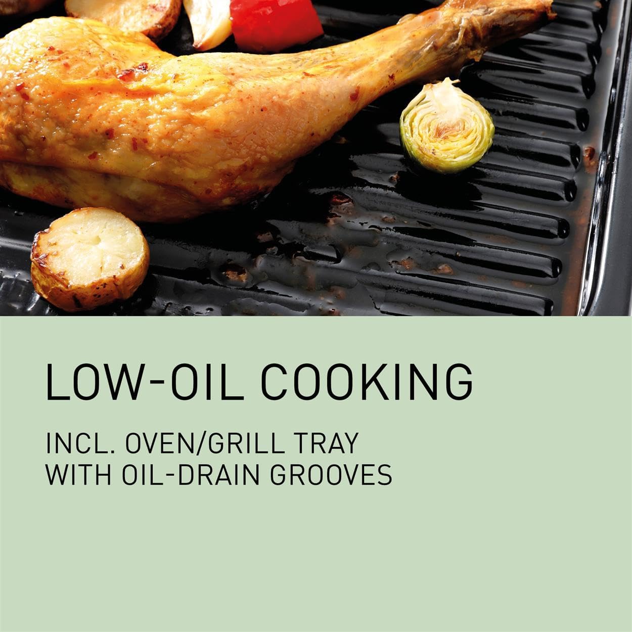 Enjoy the foods you love in a healthy way and feed your inner well-being. The Combi Oven features an enamel oven/grill tray with special grooves that collect and drain off excess fat during cooking, leaving the food crispy on the outside and juicy on the inside while reducing calories.