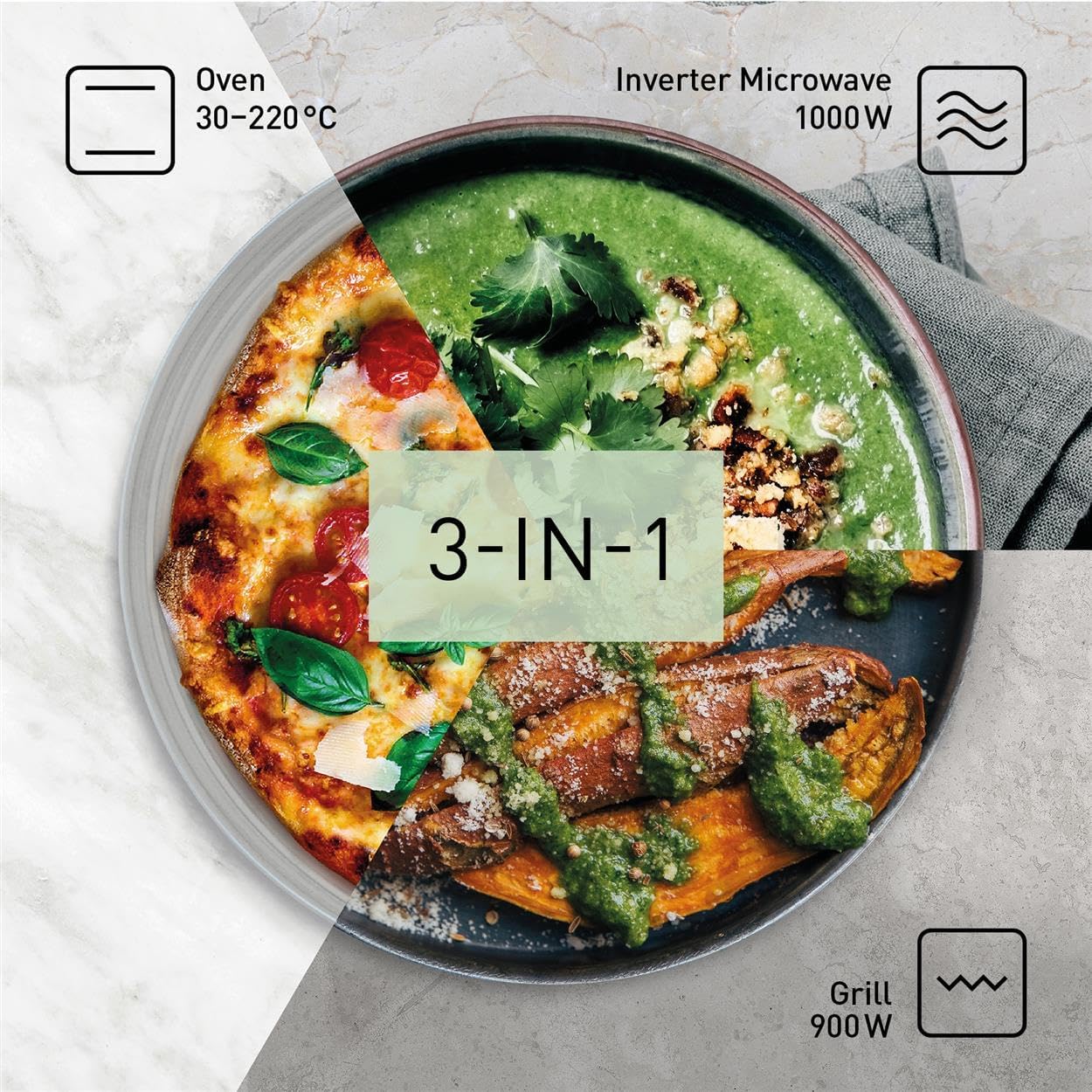 3-IN-1 COOKING: Harness inverter microwave power for optimised reheating, defrosting and cooking, a grill for browning and crisping to perfection, and an oven for everything from cakes to roast dinners.