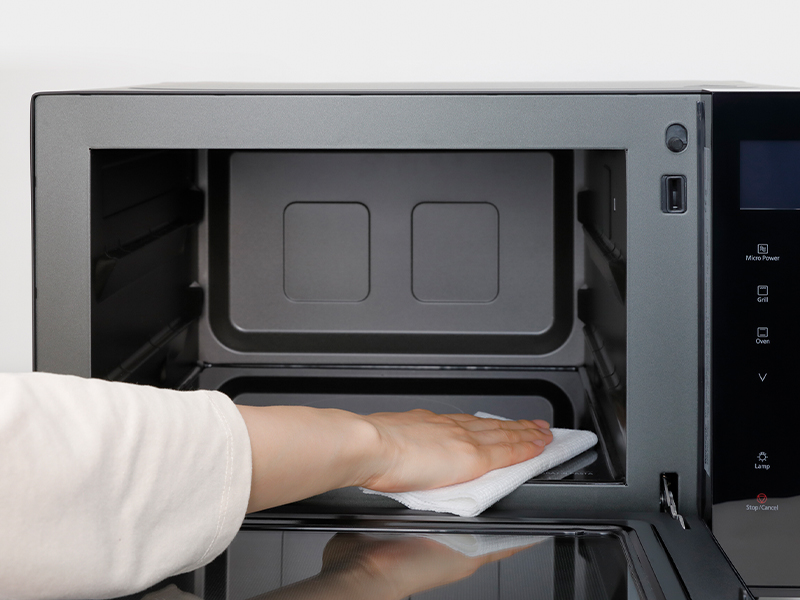 Cooking is more enjoyable when you have less to clean up. Which is why the NN-DF38 features a whole range of easy-cleaning conveniences. The flatbed interor does not have a turntable, so you can simply wipe it down. Or you can use the special Auto Cleaning Programme that does tedious cleaning for you.