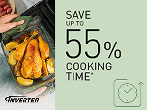 ECO COMBI MODE: Save up to 40% energy and 55% cooking time with combined inverter microwave and grill power, eliminating the need for pre-heating and allowing for faster oven performance.
