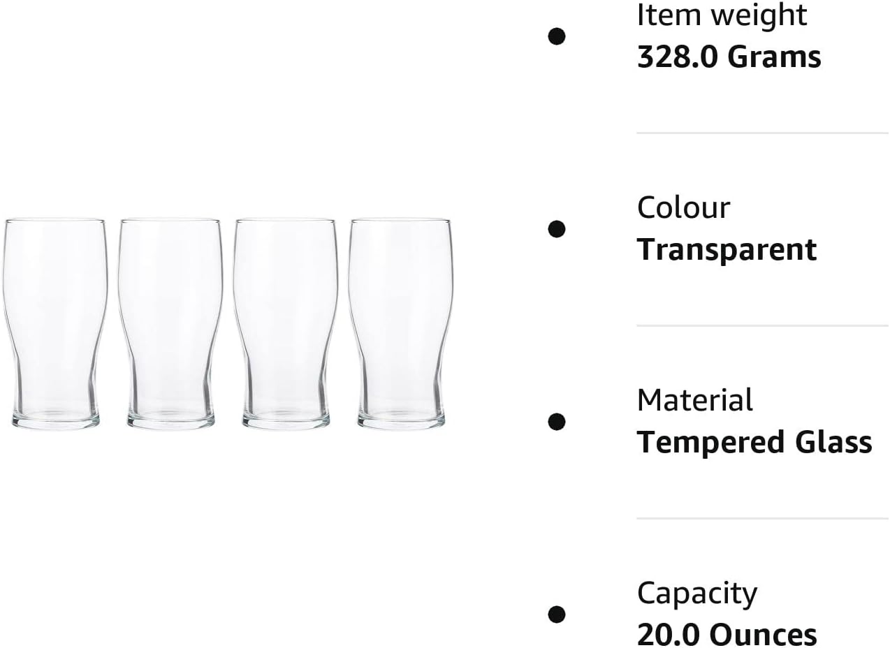 Pasabahce A1-ISCJ-UF2J Tulip Pint Beer Glass, 20oz Capacity, Pack of 4