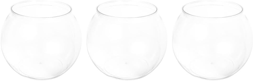 PATKAW 3pcs Plastic Fish Bowl Small Transparent Round Fish Tank Desktop Aquarium Clear Bubble Bowl Goldfish Turtle Tank Hydroponic Planter Container