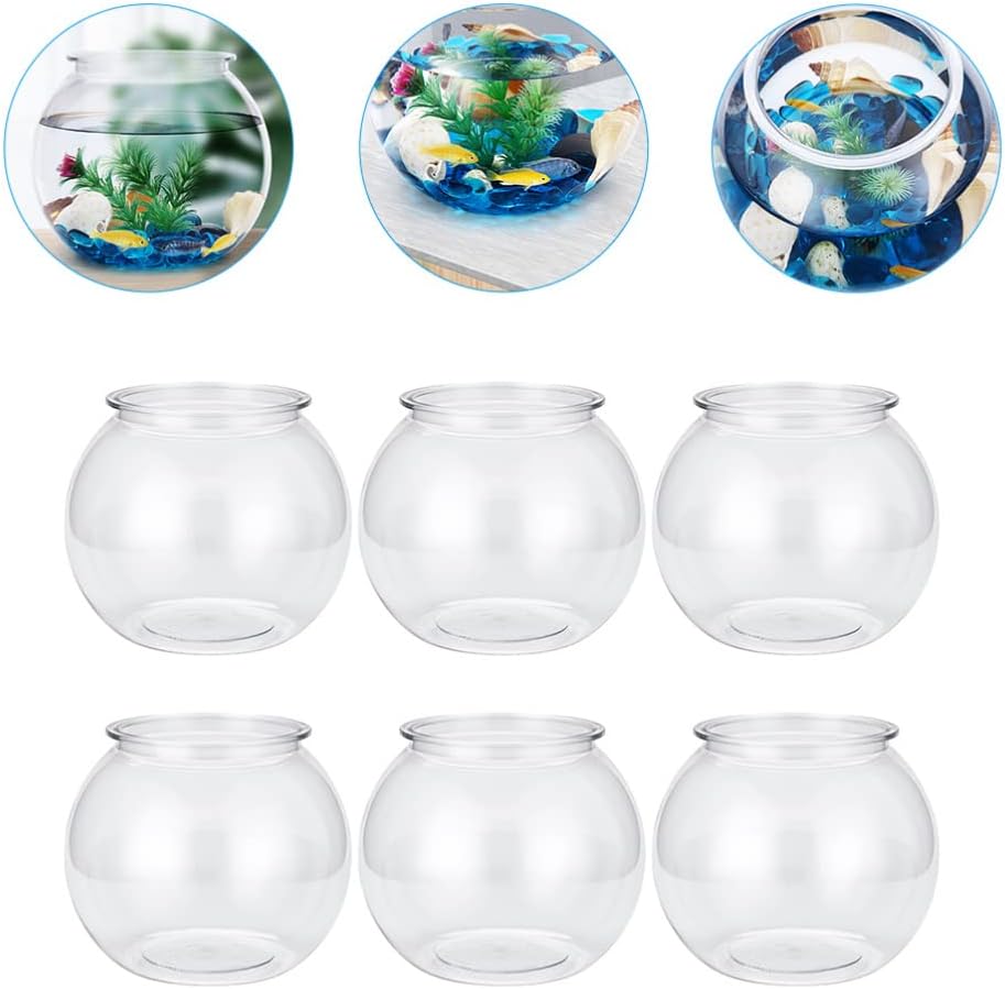 PATKAW 6Pcs Goldfish Bowl Plastic Fish Bowls Clear Small Fish Tank Transparent Aquarium Hydroponic Planters for Living Room Home Office Table Decor