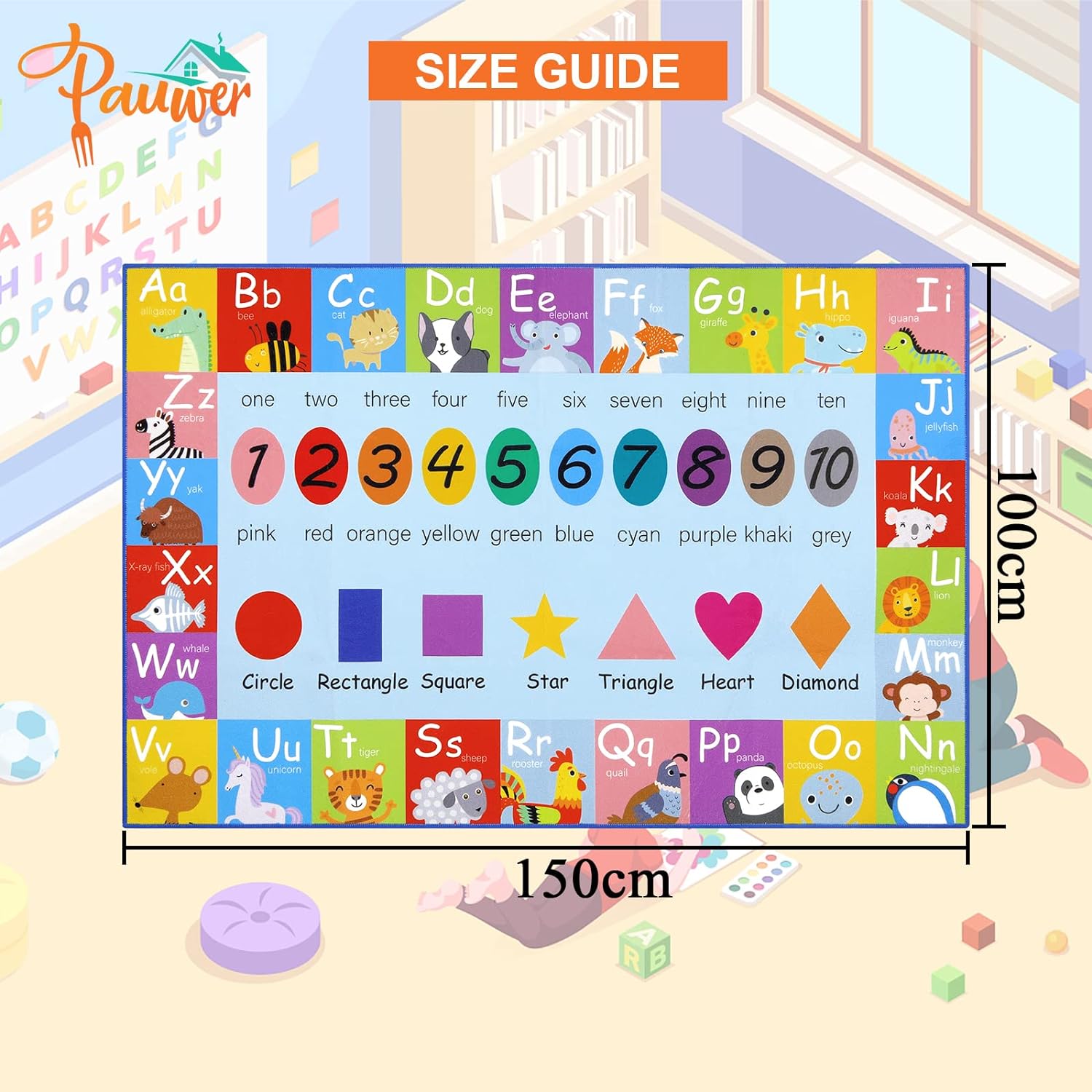Pauwer Kids Play Rug Mat Extra Large 100 x 150 cm Playtime Collection ABC Alphabet, Numbers, Shapes,Animal and Color Educational Learning Area Rug Carpet for Living Room Bedroom Playroom Classroom