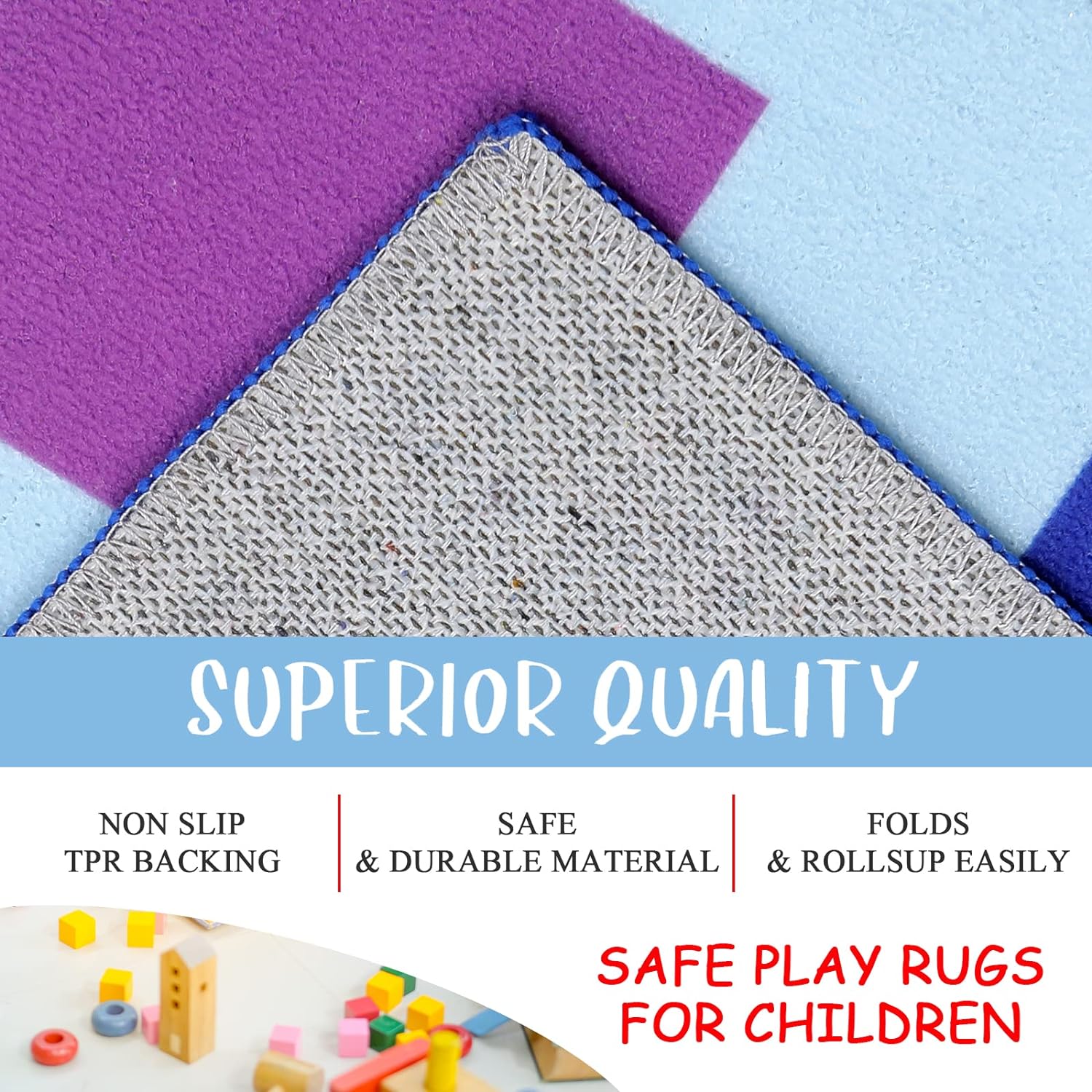 Non-slip Backing & Safe Play Rug : Non-slip update TPR rubber backing, providing some safety protection for daily use; reinforced surged edges for durability,you can use it safely for a long time.