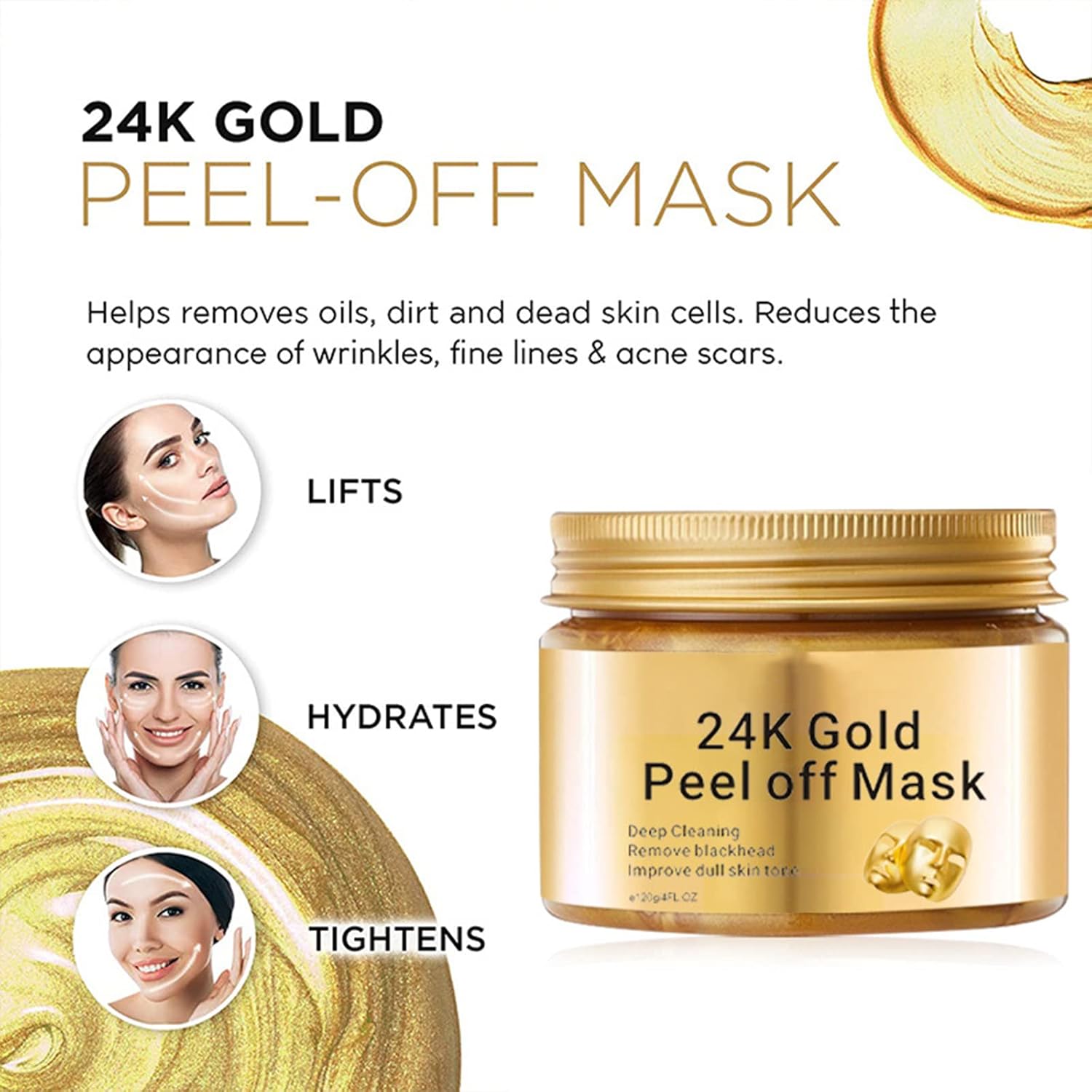 【Soothing cleaning】Our Gold Face Peel Mask removes impurities, dirt and excess oil.Help keep your face smoother and more tender. This mask is also comes with a spatula.