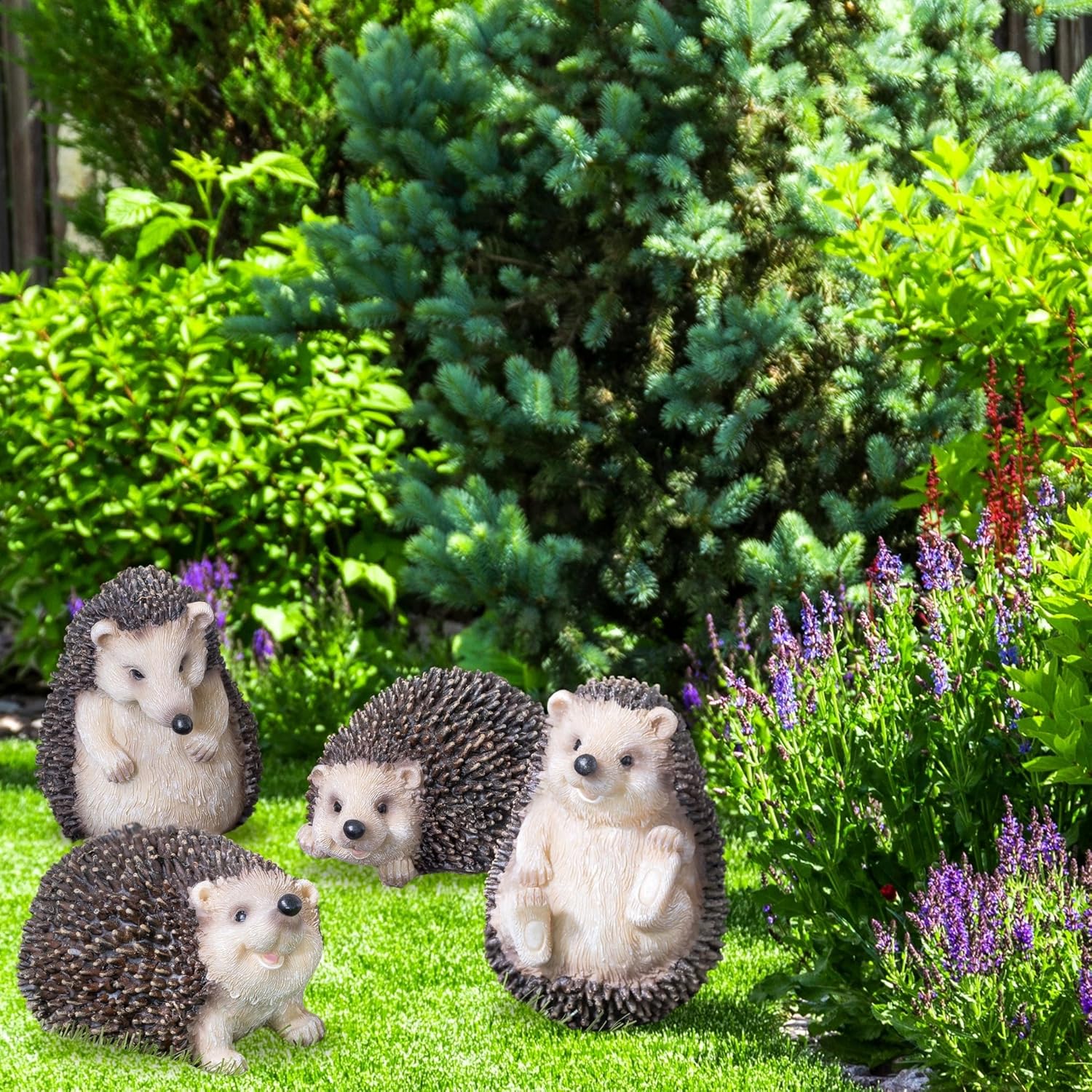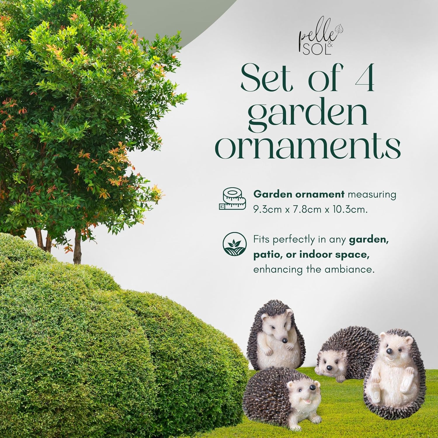 Pelle & Sol 4 Hedgehog Garden Ornaments, Garden Ornaments Outdoor | Polyresin Garden Decorations, Waterproof Garden Statues, Animal Ornaments, Garden Decor, Garden Accessories & Garden Gifts