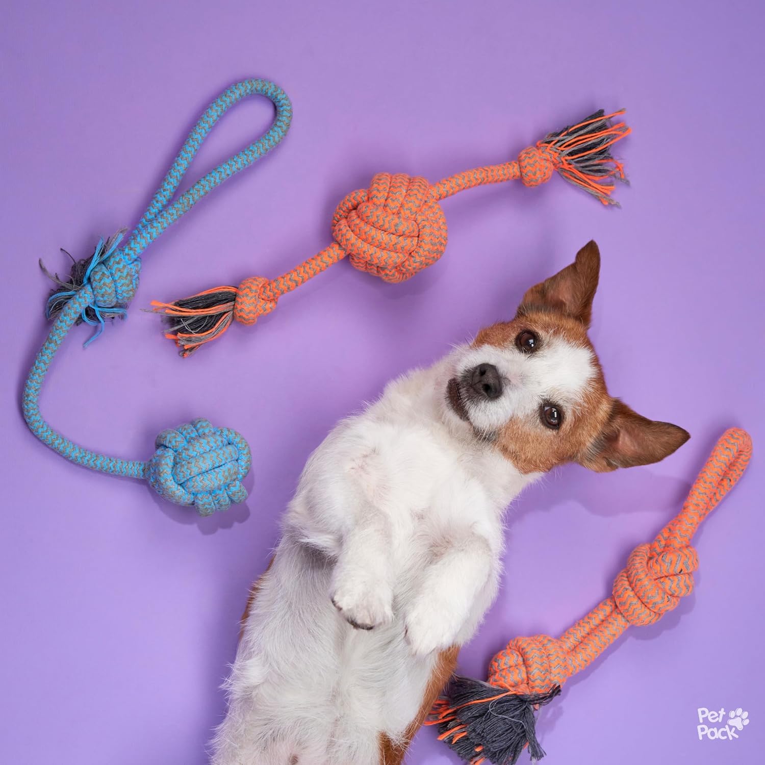 Our Dog Toy Set features thick cotton ropes and a solid rubber bouncy ball, built to withstand vigorous play and chewing. Unlike flimsy toys, ours offer lasting entertainment, minimising the need for replacements. Providing great puppy teething toys.