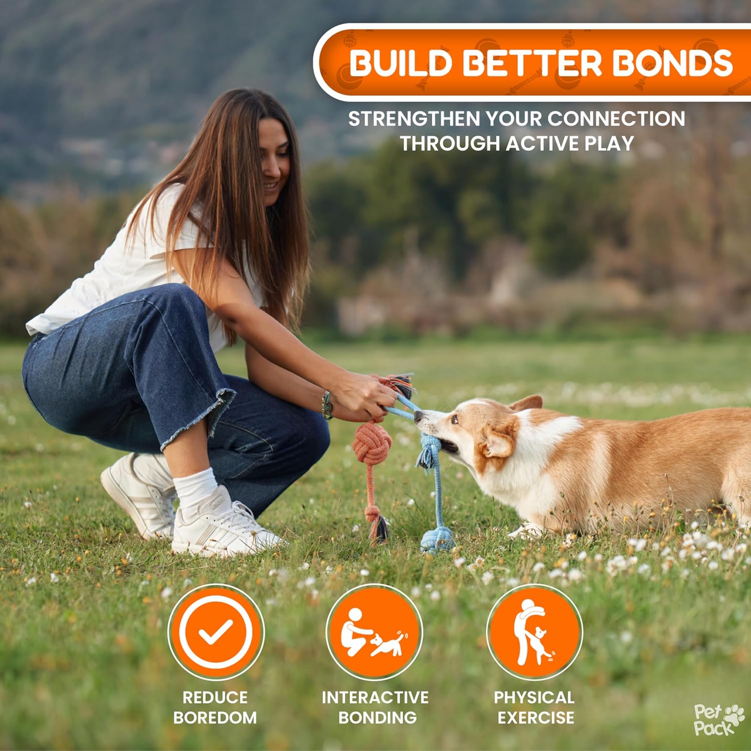 Superior Rope Durability – Experience playtime perfection with our thicker, higher-quality ropes. unlike others, our set promises robust, entertaining dog toys for medium dogs.