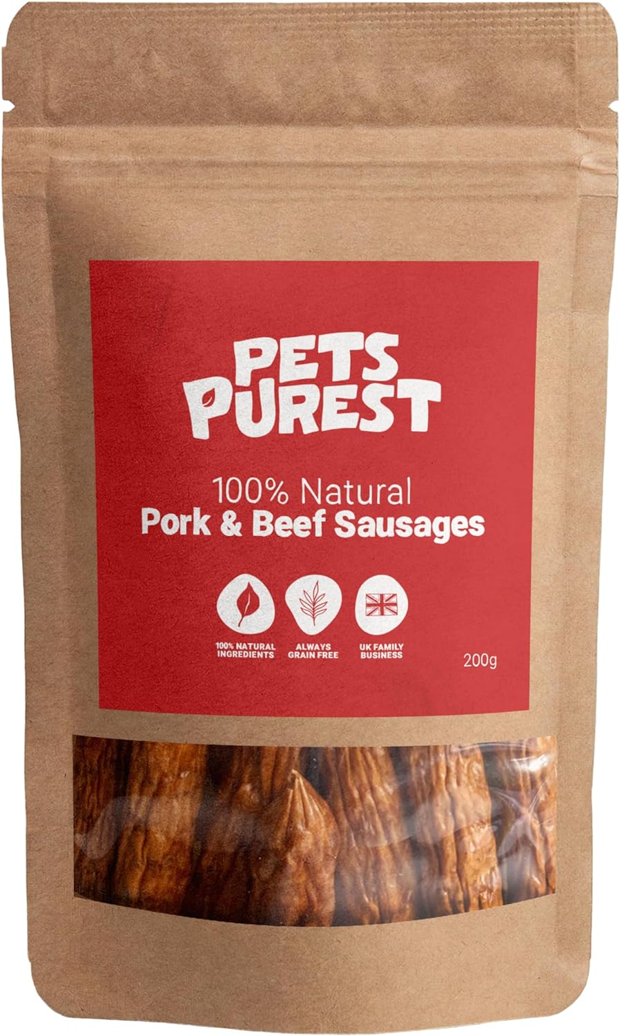Pets Purest Natural Dog Treat Chews – 100% Healthy Air-Dried Pork & Beef Sausage Meat Treats for Dogs, Puppy & Senior. Grain & Gluten Free Low Fat Raw Protein Dog Food Snack (200g)