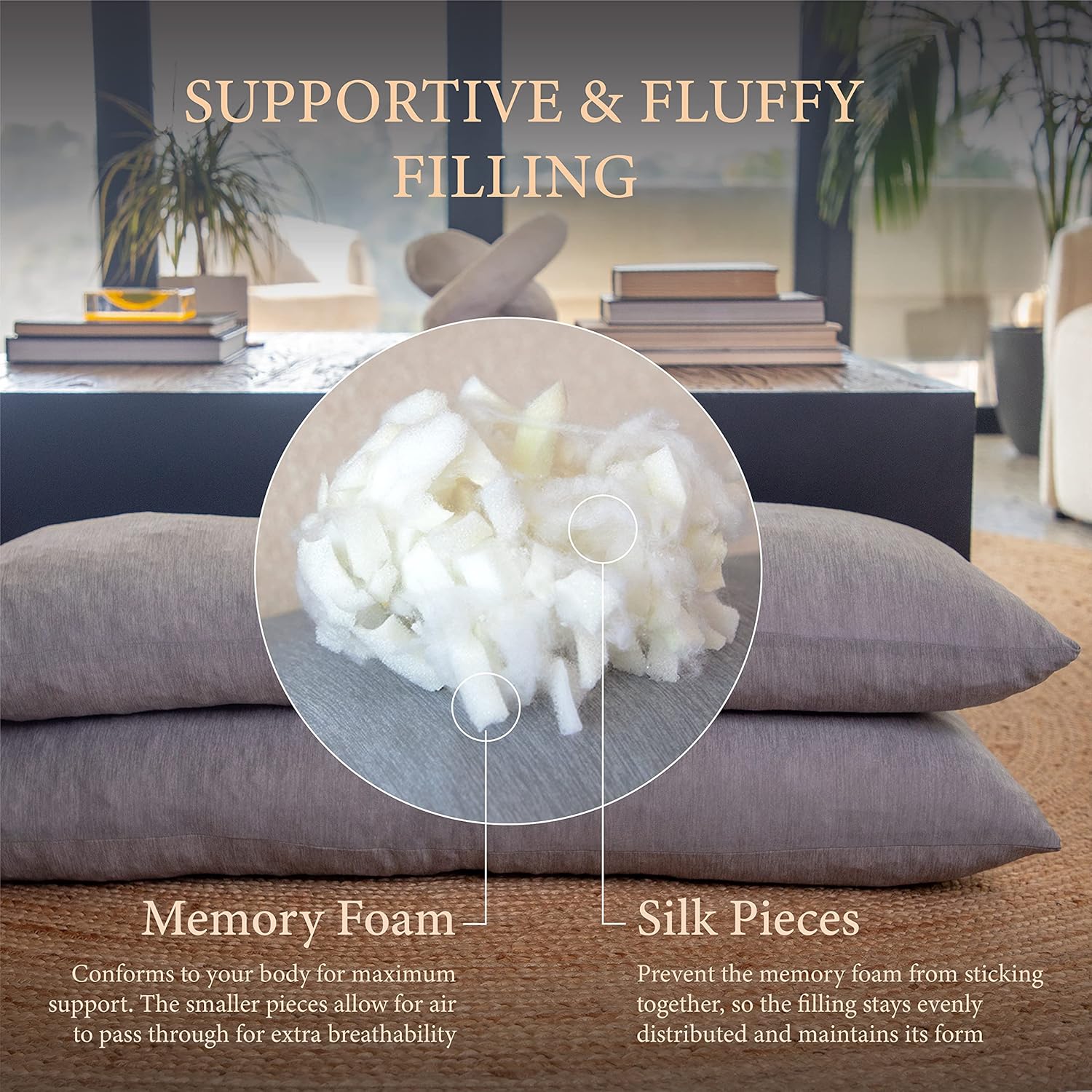 Designed to Last: We use fine and smooth silk fiber that wraps the shredded foams and prevents them from sticking to each other, helps maintain the foams evenly distributed and helps the sponge bounce back.