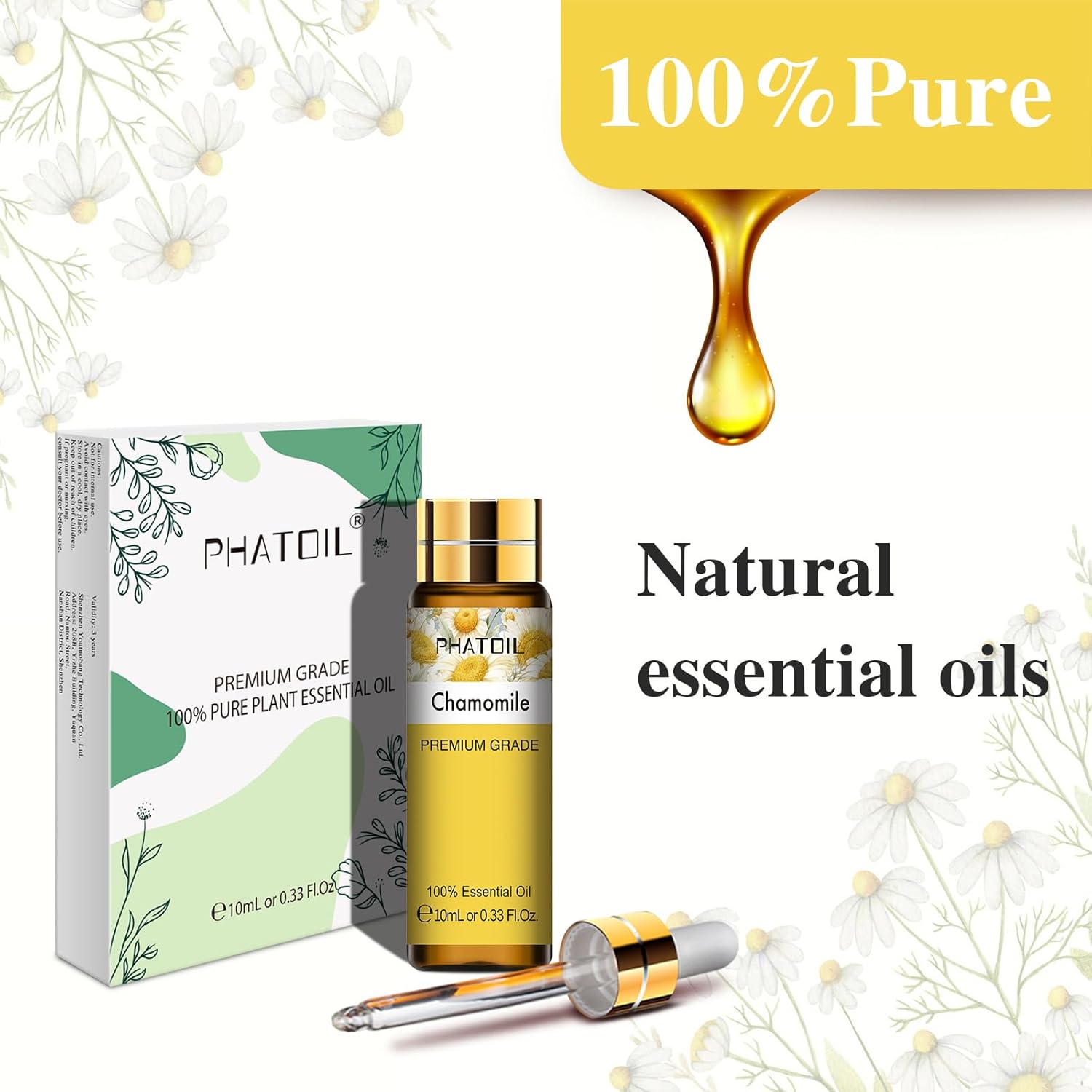 PHATOIL Chamomile Essential Oil 10ML – Undiluted and Cruelty-Free, Pure Chamomile Oil – Essential Oils for Diffusers for Home
