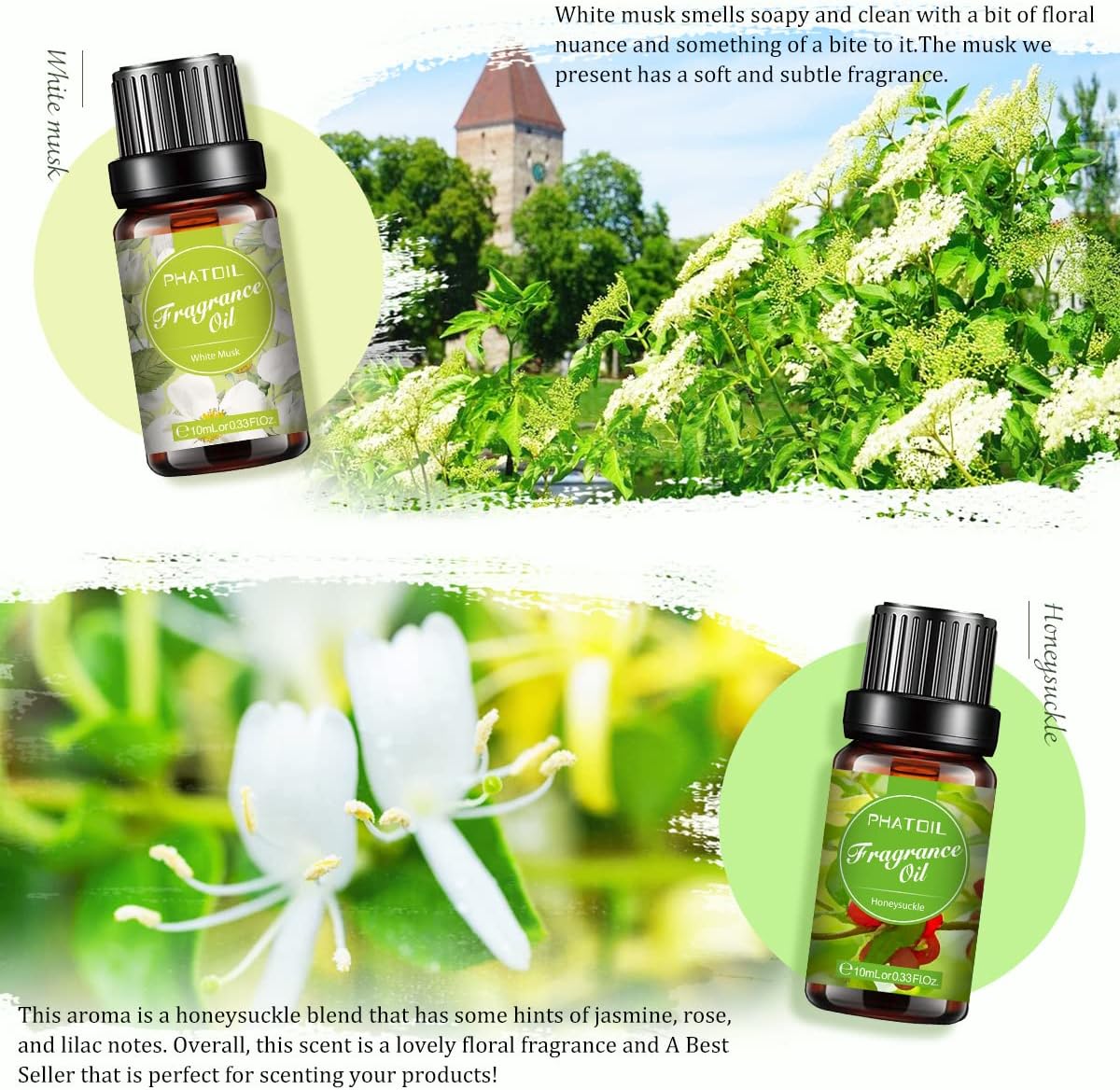 The Best Floral Fragrance Oil Set: This Fragrance Oil Set is a list of some of the best and best-selling floral essential oils we have selected, including White Musk, Parma Violet, Orange Blossom, Japanese Magnolia, Freesia, Honeysuckle.