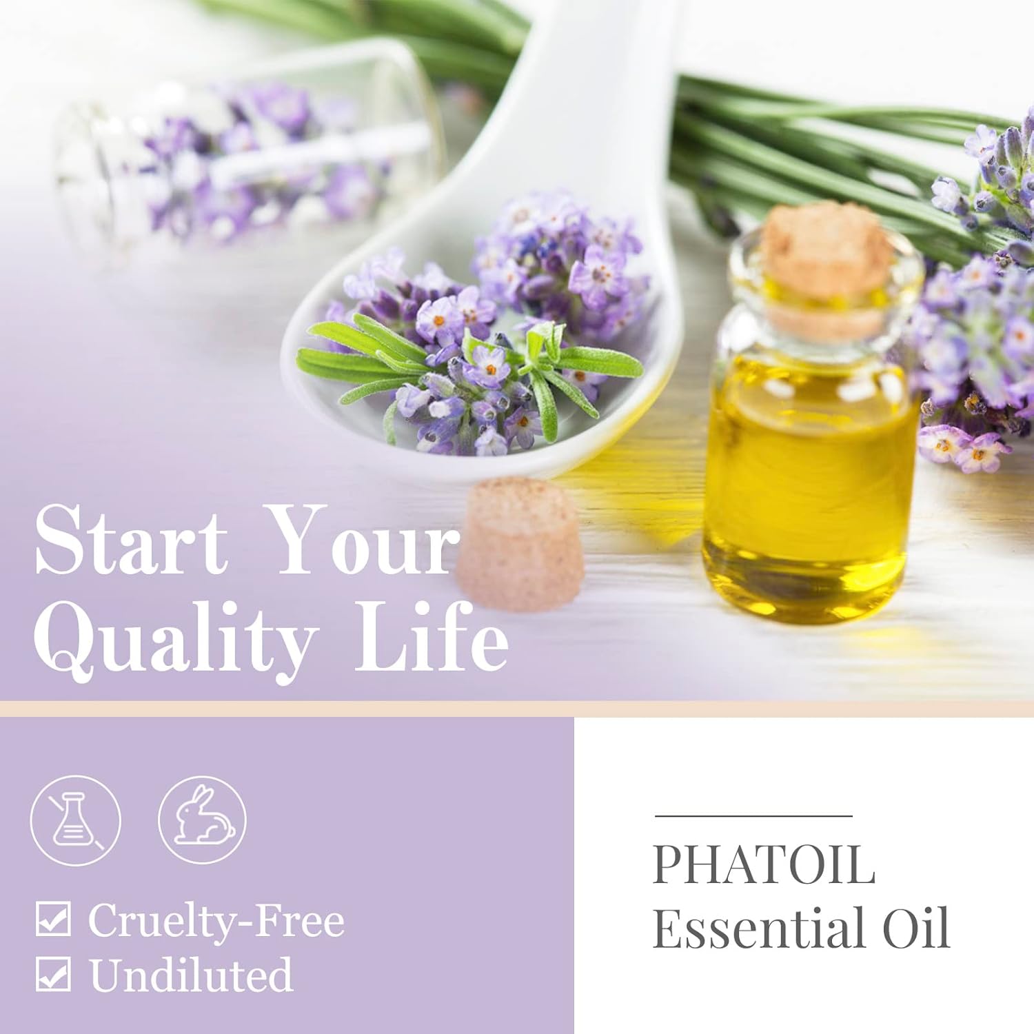 PHATOIL Lavender Essential Oil 10ML – Undiluted and Cruelty-Free, Pure Lavender Oil – Essential Oils for Diffusers for Home
