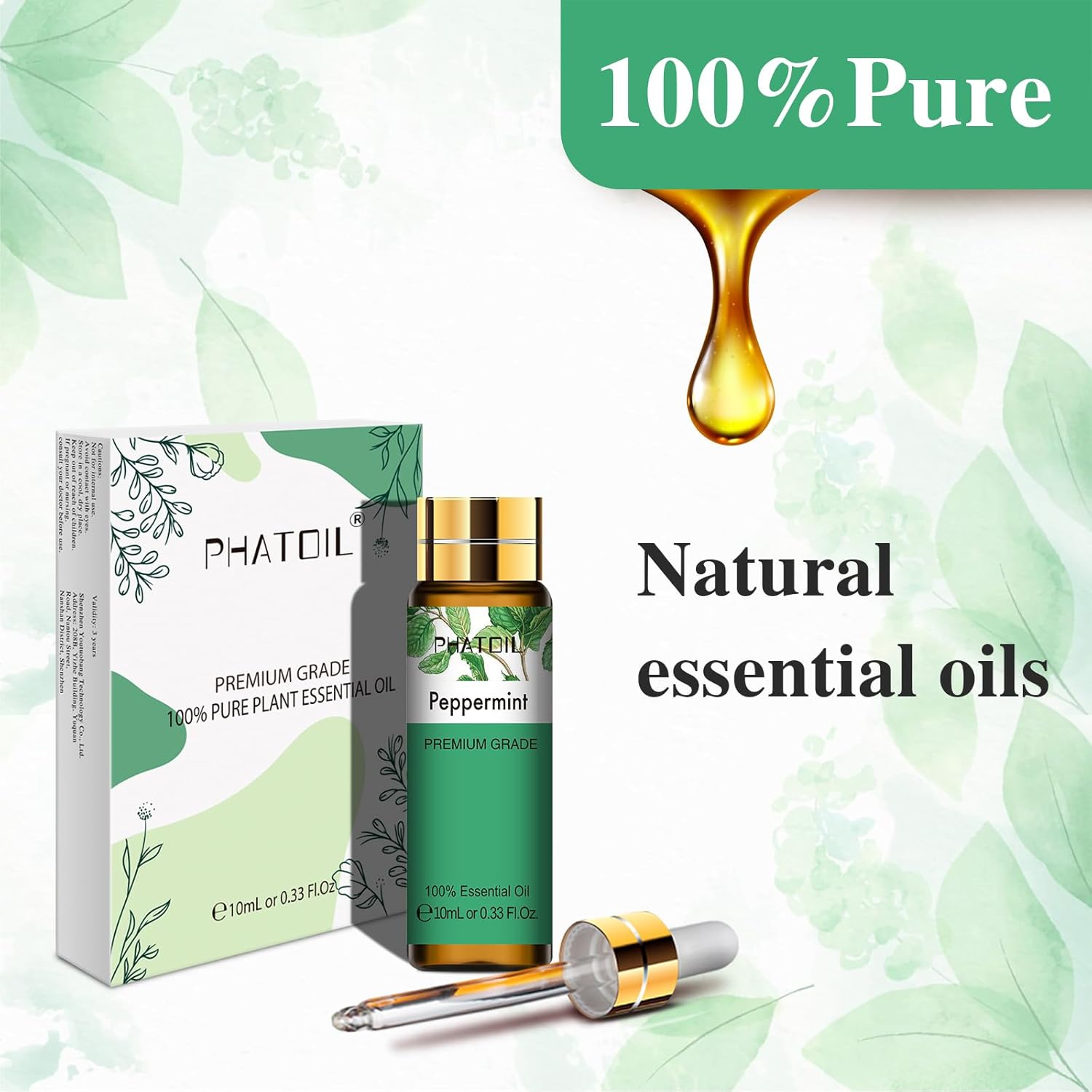 PHATOIL Peppermint Essential Oil 10ML – Undiluted and Cruelty-Free, Pure Peppermint Oil – Essential Oils for Diffusers for Home