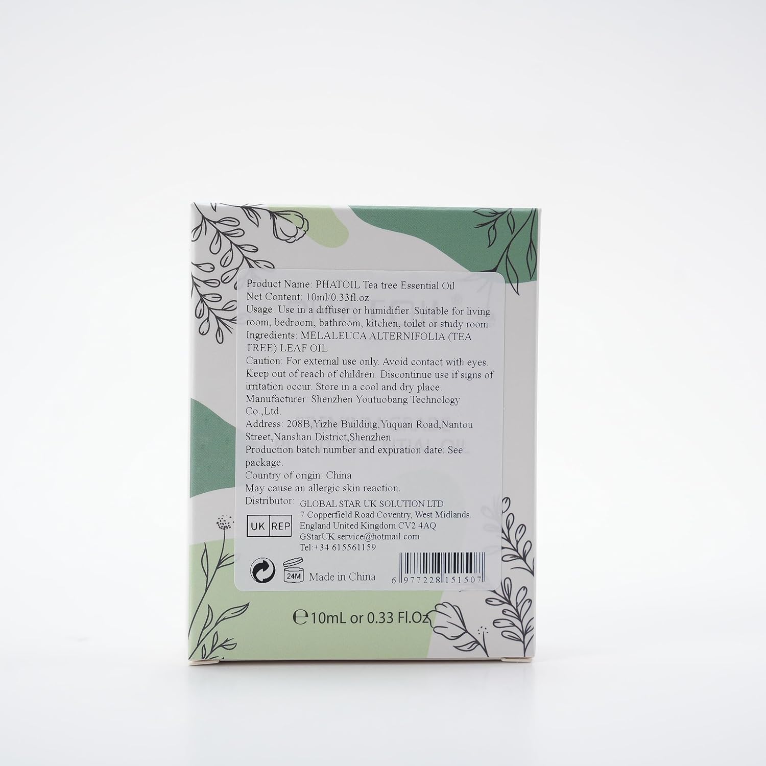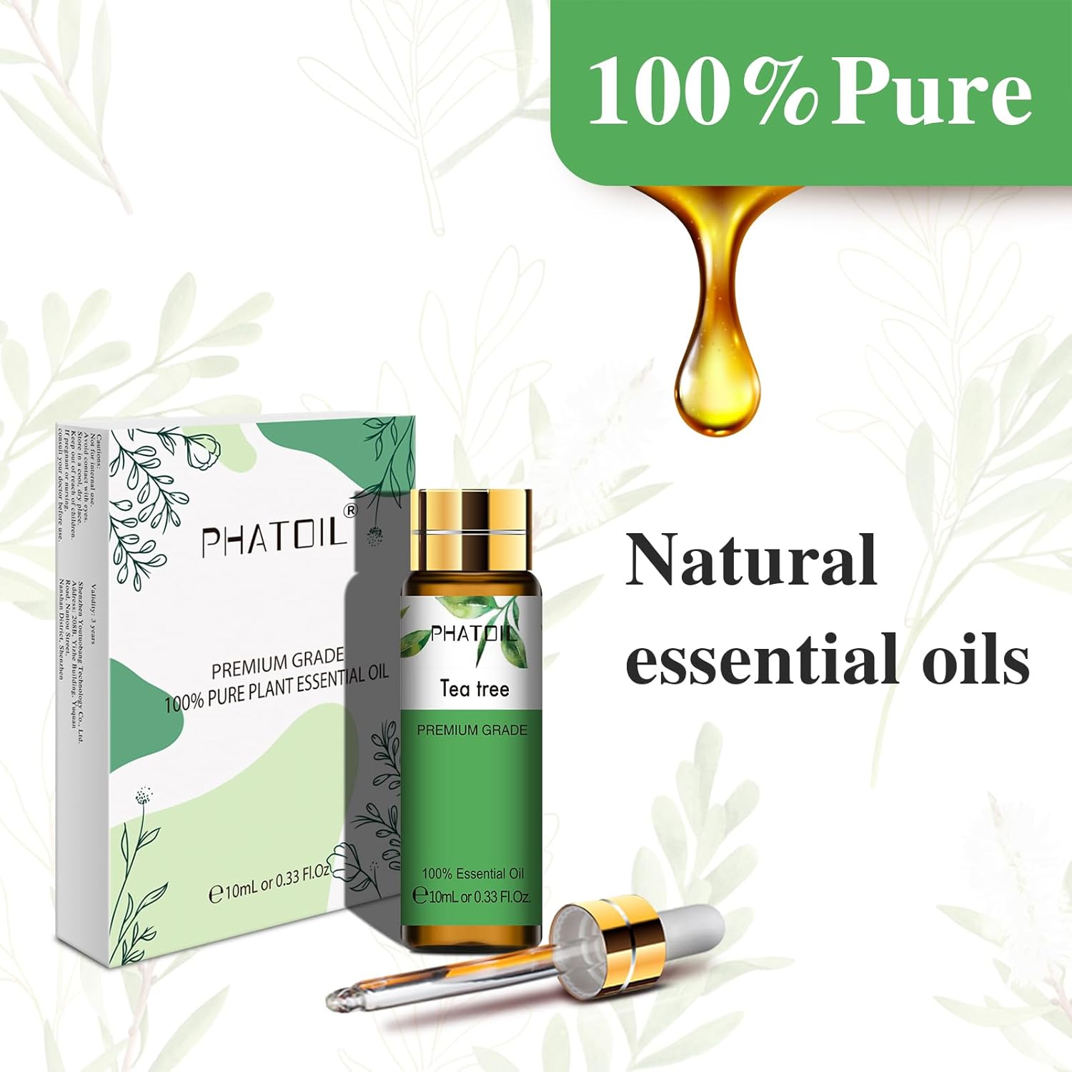 PHATOIL Tea Tree Essential Oil 10ML – Undiluted and Cruelty-Free, Pure Tea Tree Oil – Essential Oils for Diffusers for Home