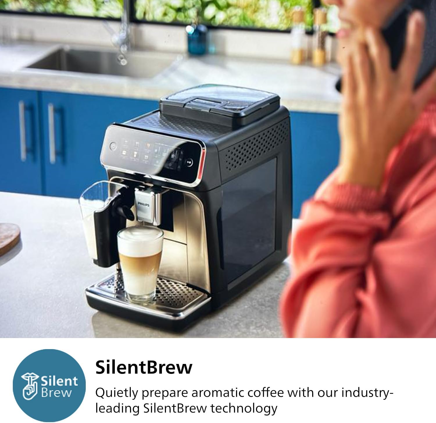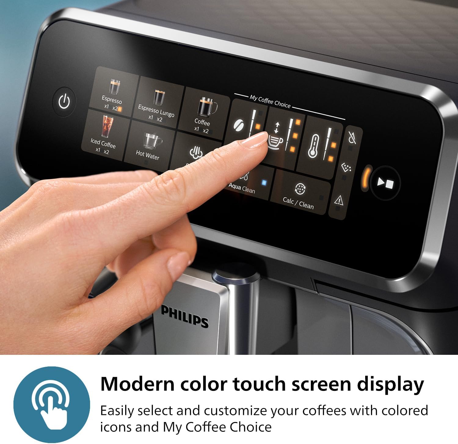 PHILIPS 3300 Series Fully Automatic Espresso Machine – 5 Beverages, Intuitive Touch Display, Classic Milk Frother, SilentBrew, 100% Ceramic Grinder, AquaClean Filter, Black Chrome (EP3326/90)