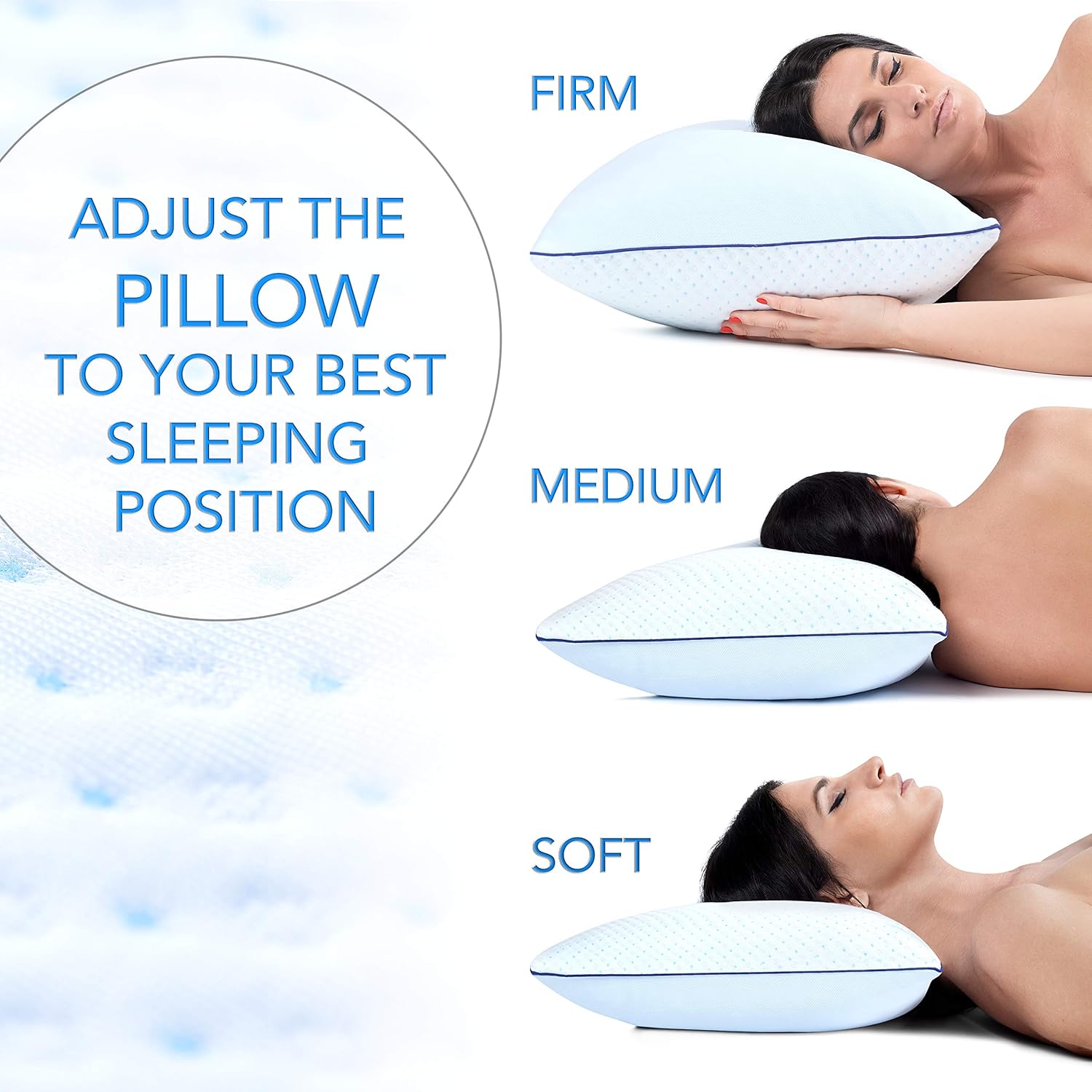 👌 ADJUST YOUR COMFORT LEVEL, YOU ARE IN CONTROL – Our unique, one-of-a-kind adjustable design allows you to access the memory foam fill, which you can add or remove to suit your size, shape, and sleep position. Zippers for both inner and outer cover for easy adjustment of thickness and comfort. Conforming Shape Orthopedically Supports the Neck For Side, Front, & Back Sleepers.