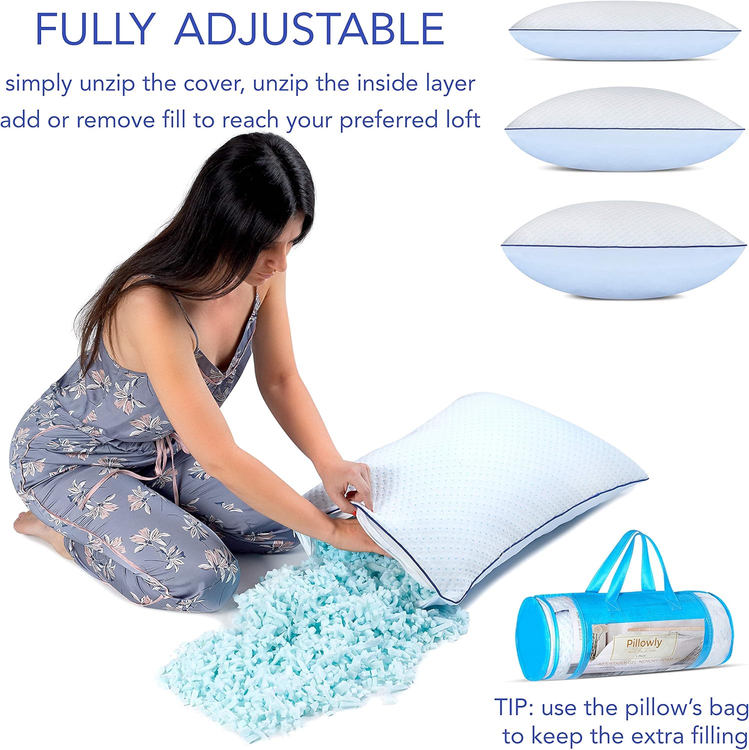 pillowLY Shredded Memory Foam Pillow For Neck Support & Pain Relief – 2 Comfort Orthopedic Zones (Soft & Firm) Adjustable for Stomach Back & Side Sleepers