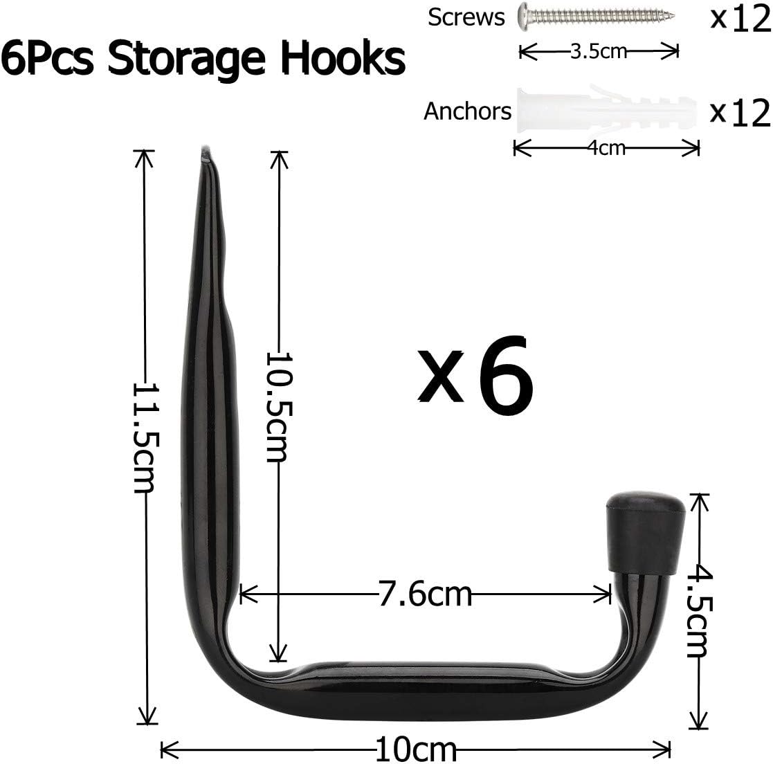 6 Pack 10cm Garage Storage Hooks Great for Garden Tools, Hoses, Sports Equipment Bag, Power Tools, Toy and Indoor or Outdoor Used.