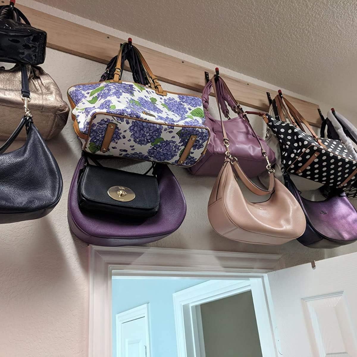 EASY TO INSTALL: Make a mark according to the distance between the two holes on the hook ,then drill holes at the mark and insert the plastic expansion,and finally fix the hanger with the metal screw.