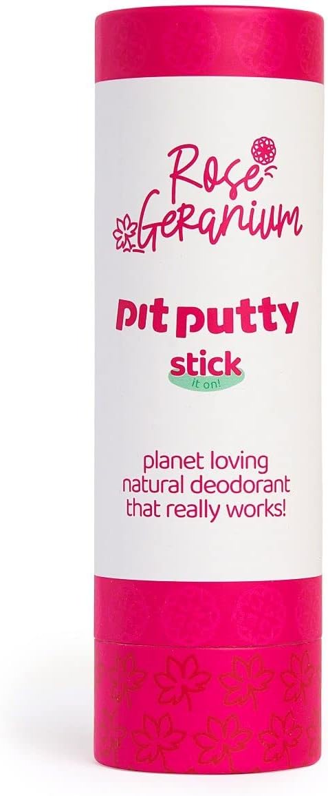 Plastic Free Natural Deodorant Stick | Vegan & Eco-Friendly Deodorant By Pit Putty | 100% Natural Deodorant For Women & Men 80g (Rose Geranium)