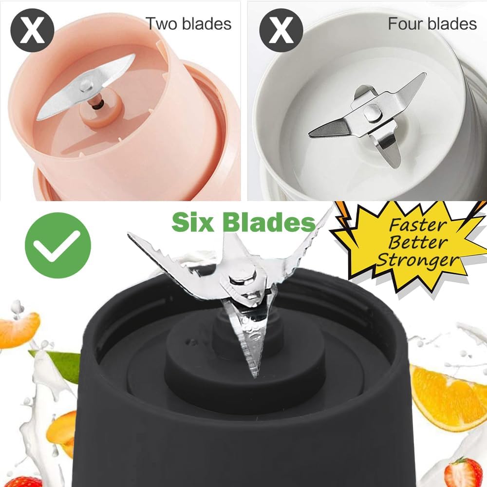 Portable Blender, Juice Maker, Portable Blender Smoothie Maker, Juicer, Mini Blender with Six Blades for Baby Food, Travel, Office, Usb Rechargeable, 380ml, Black