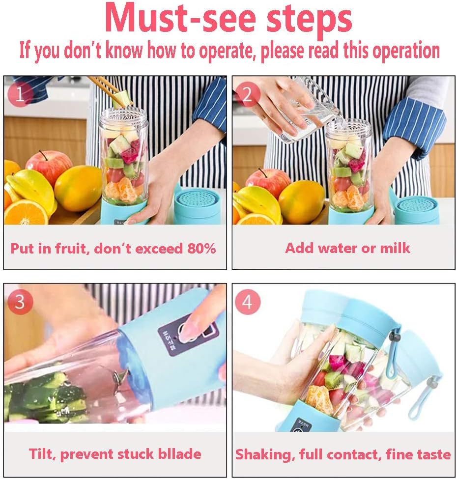 🍓【Upgrade 6 Blades Mixing】The juicer extractor is designed with 6 PCS 304 stainless steel blades, 6 Blades portable blender has stronger power than the traditional 4 Mini Blades, 22000 RPM, which can easily make juices, vegetables into amazing smoothies, leave no chunks of fruit and ice, easy to use.