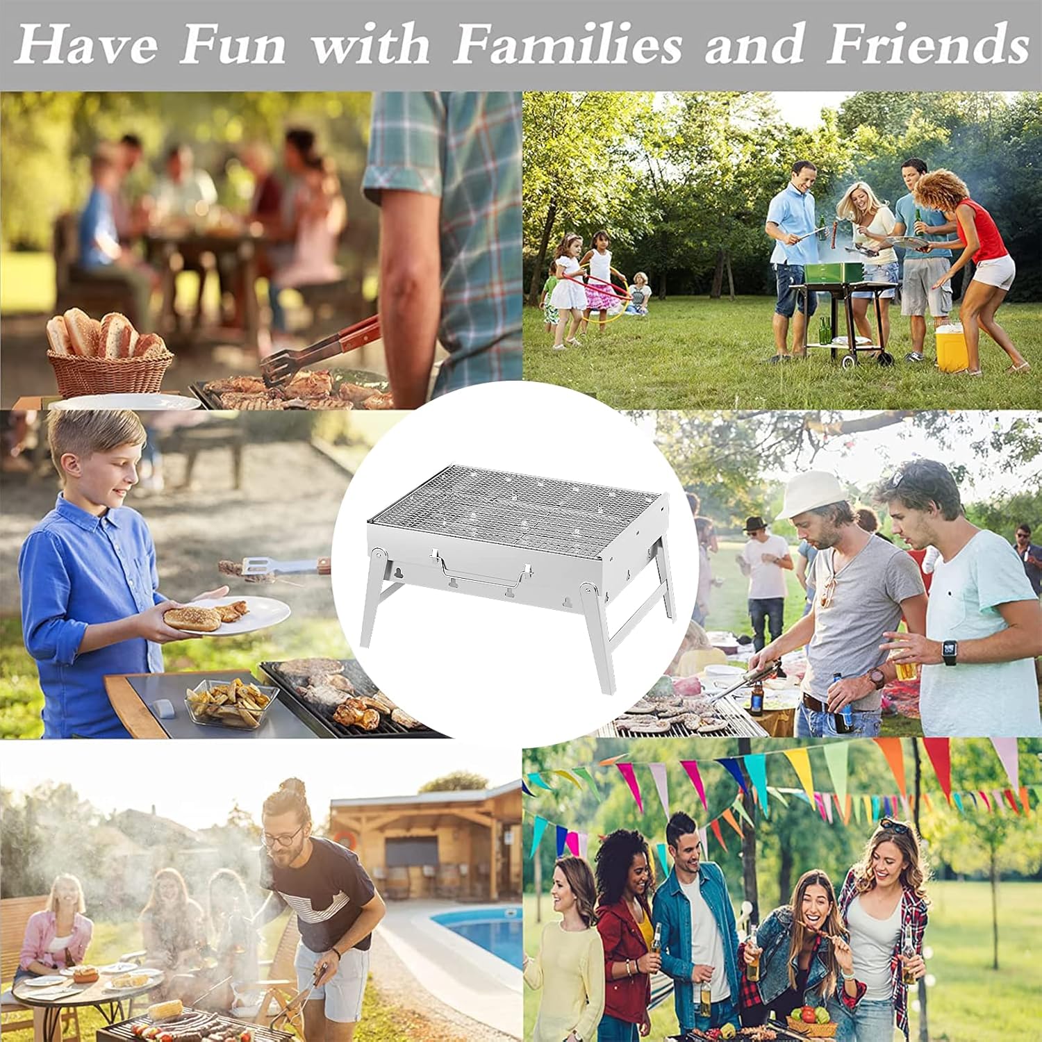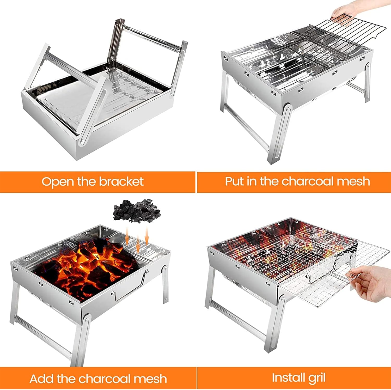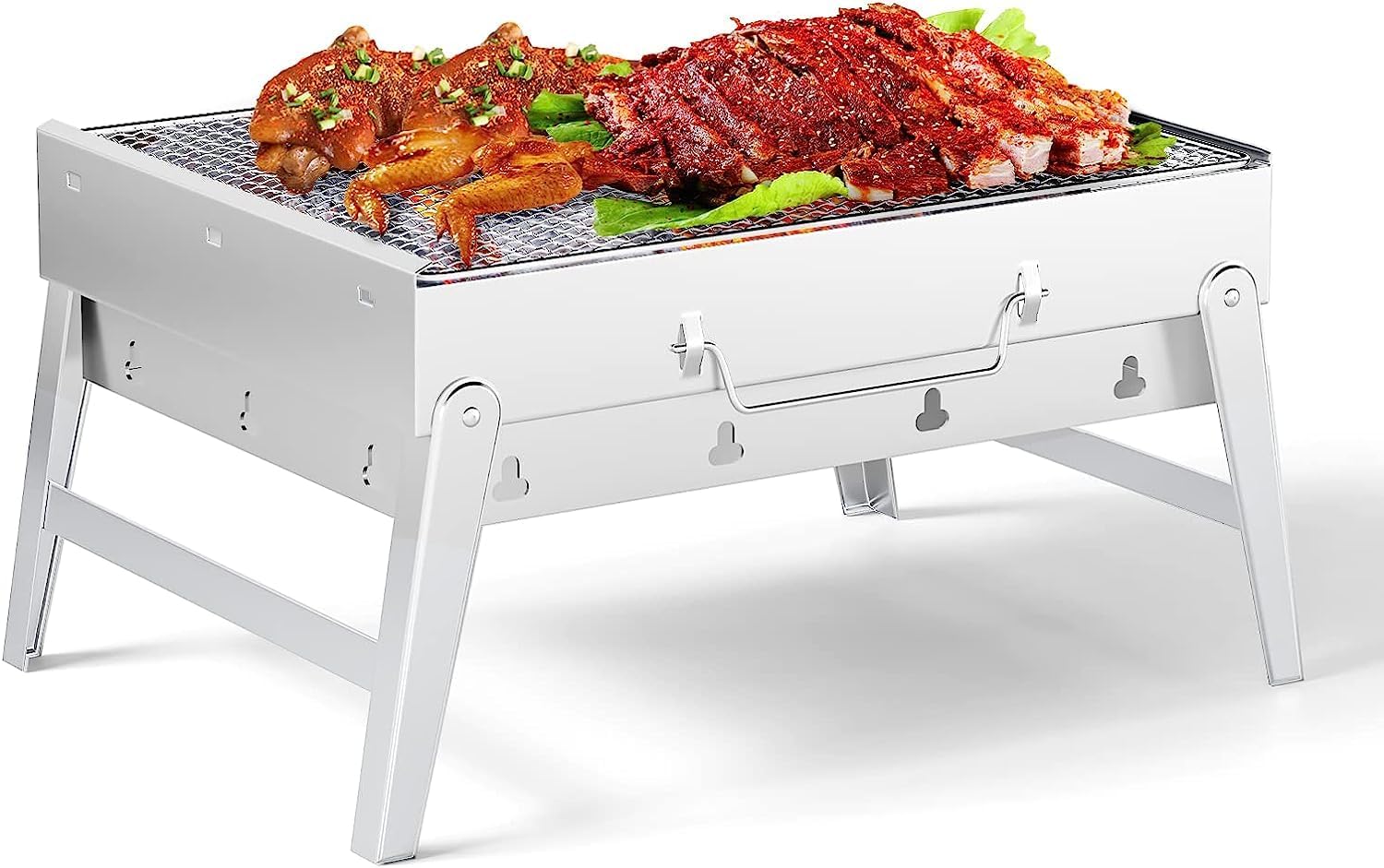 Portable Charcoal Barbecue Grill,UYOTBKEUB Mini Stainless Steel Compact Grill for Travel, Outdoor Cooking and BBQ, Camping Grill Picnic Patio Backyard