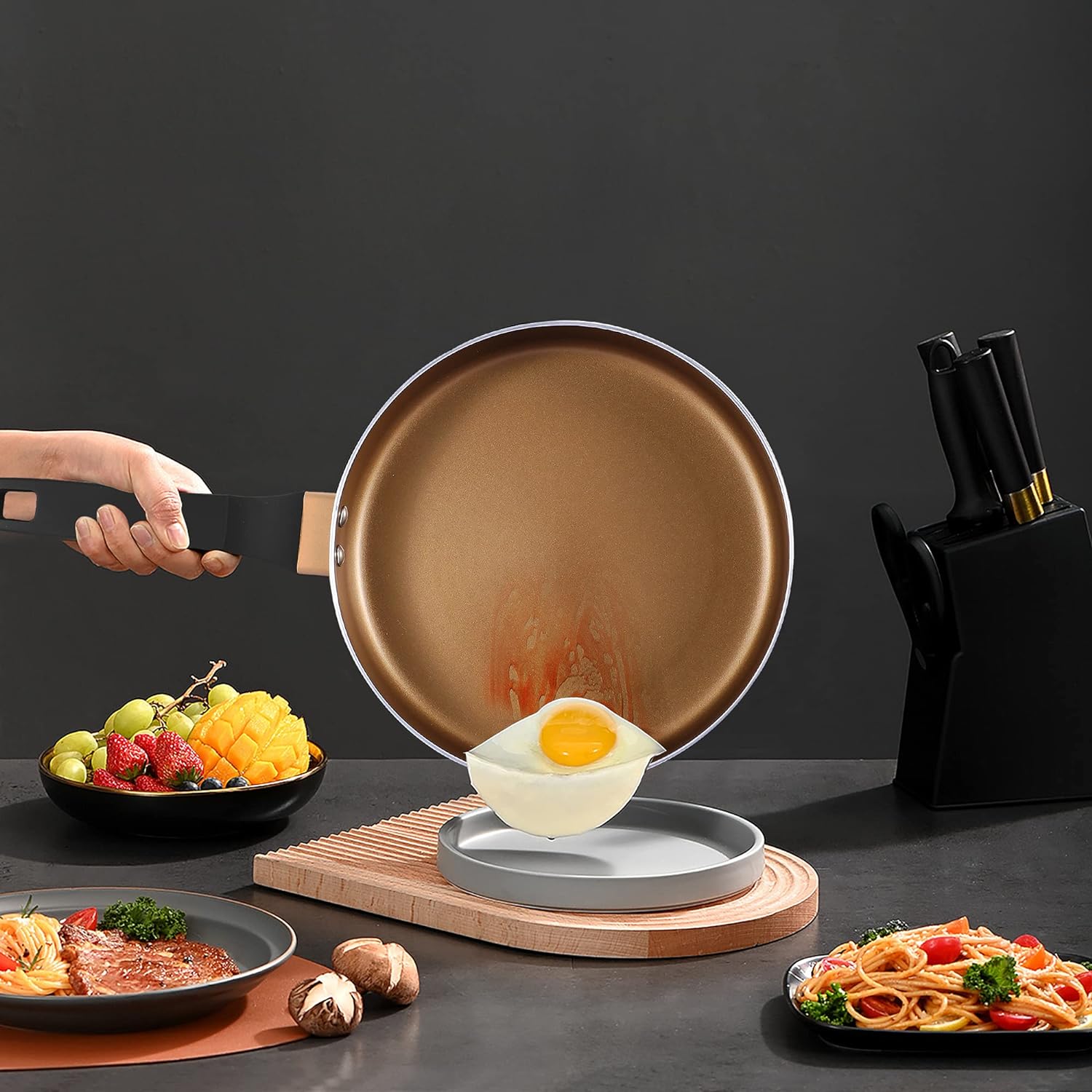 With triple stainless steel basement, the nonstick pans set conducts heat evenly and fast while cooking.